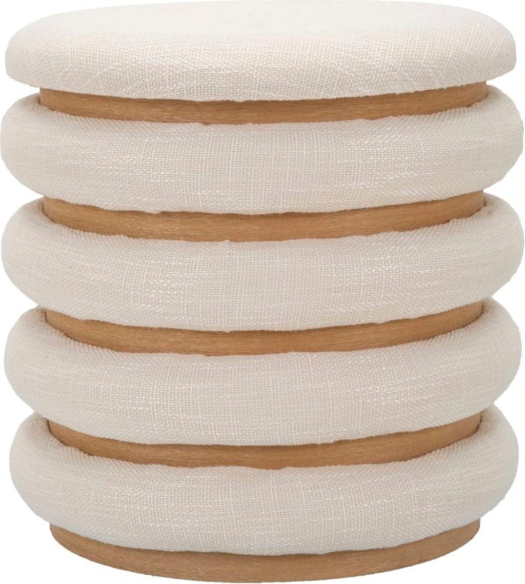 Make an extraordinary design statement in your living space with the Damasco Line Stool by Mauro Ferretti. This round stool redefines coziness and impresses with its special pattern of sculptural circles. The unique look is created by layered, softly padded rings that are harmoniously separated by visible wooden joints.