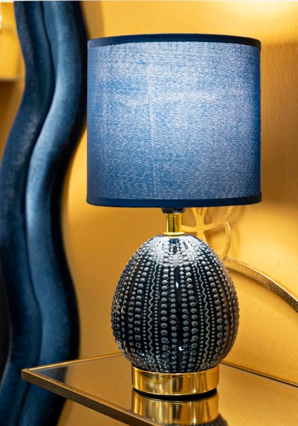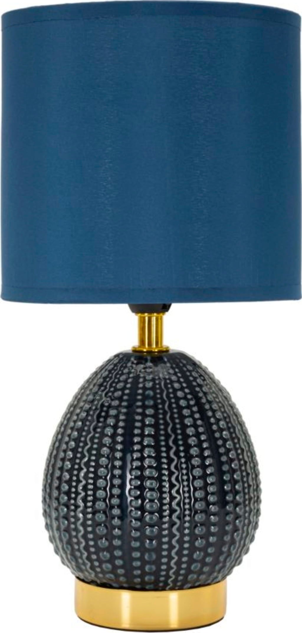 Add modern style and subtle brightness to your room in an instant with this elegant bedside lamp. The lamp base in a light, timeless blue features a unique, fine relief decoration of irregular dots. This unconventional texture provides a modern, noticeable accent that radiates calm.