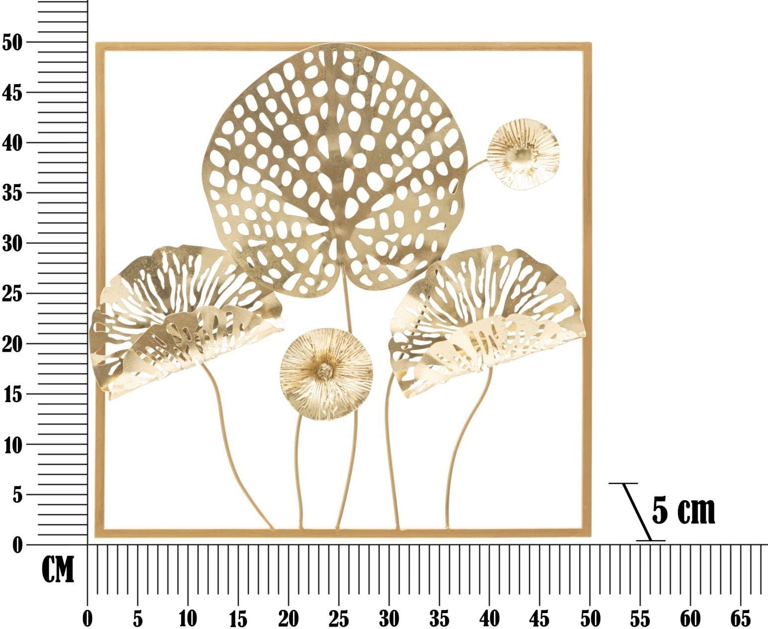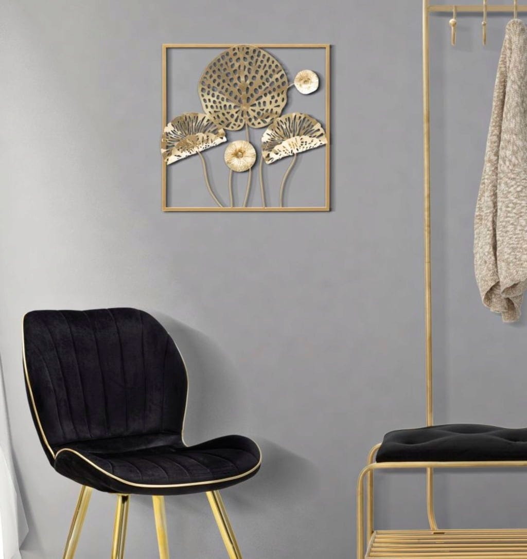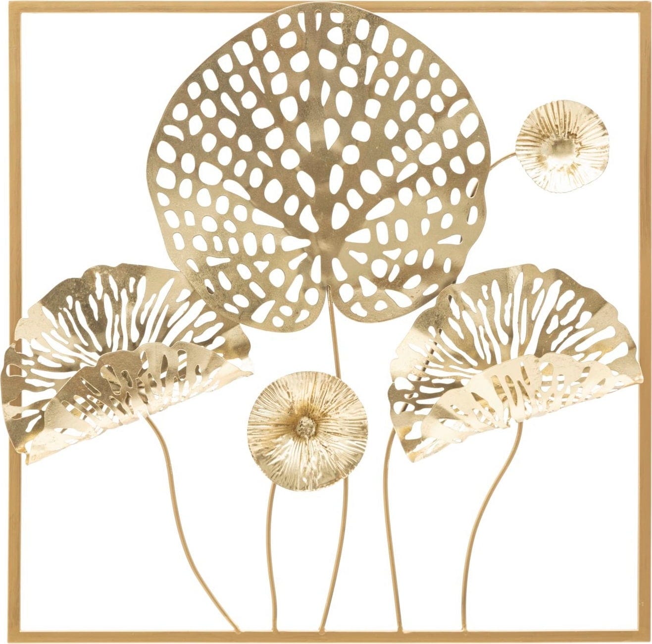 Bring pure luxury and natural elegance directly into your living room with the Flowers Gold Wall Decoration by Mauro Ferretti. This decorative 3D panel made of high-quality, gold-colored metal captures the delicate beauty of nature and transforms it into a modern work of art for your wall. The design impresses with its fan-like, intricately openwork leaf motifs that seem to float within a simple, square gold frame.
