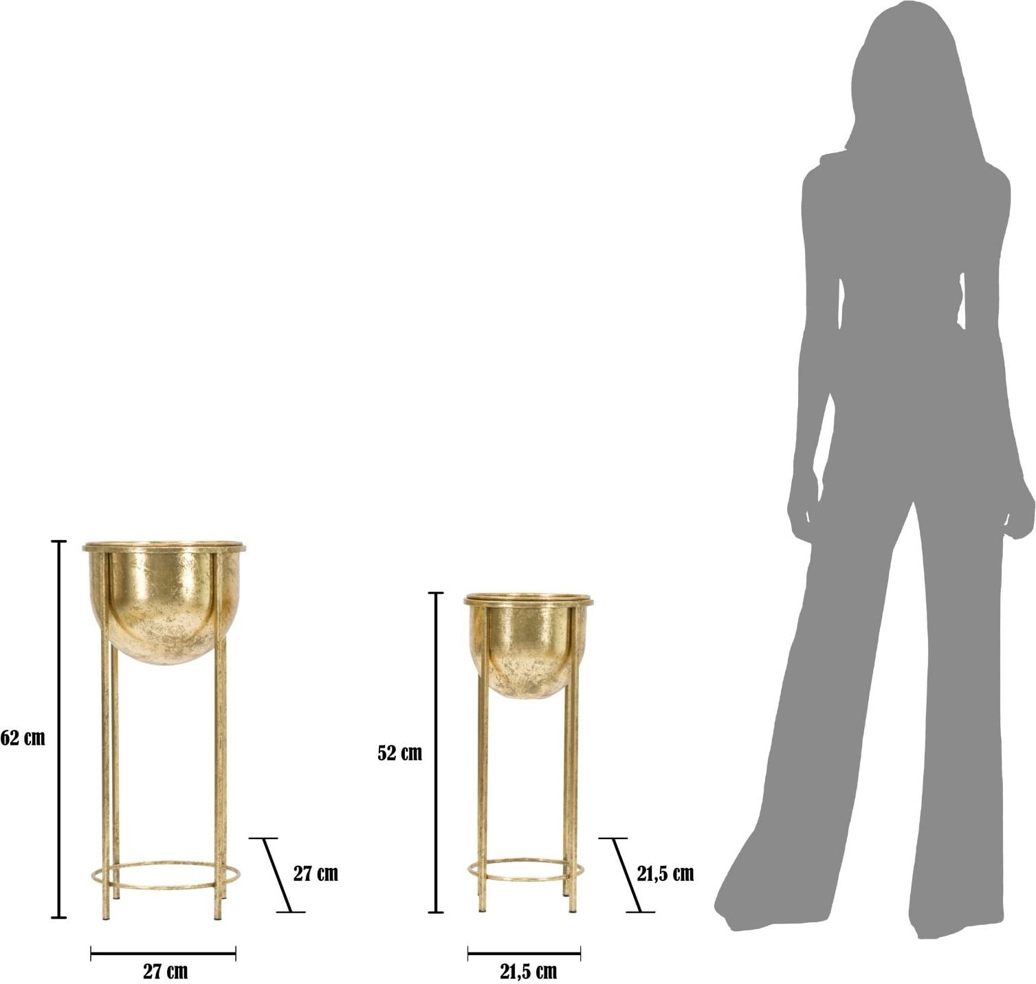 Particularly practical: the pots are removable for easy cleaning. Place this set next to a window or along a dark wall to show off the luxurious gold colour to its best advantage.