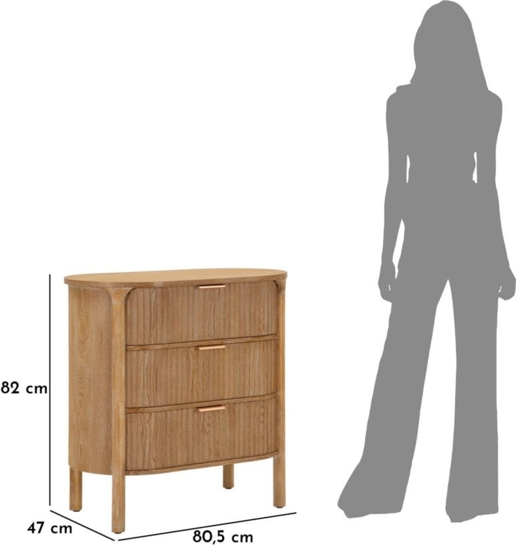 The fronts have a subtle vertical structure, giving the chest of drawers a sophisticated texture. Thanks to 3 large drawers, it offers immense storage space, ideal for bringing order and calm to your bedroom or living room. The stylish look is completed with discreet, copper-coloured handles. Göteborg is the ideal piece of furniture for harmoniously combining functionality and aesthetic calm.
