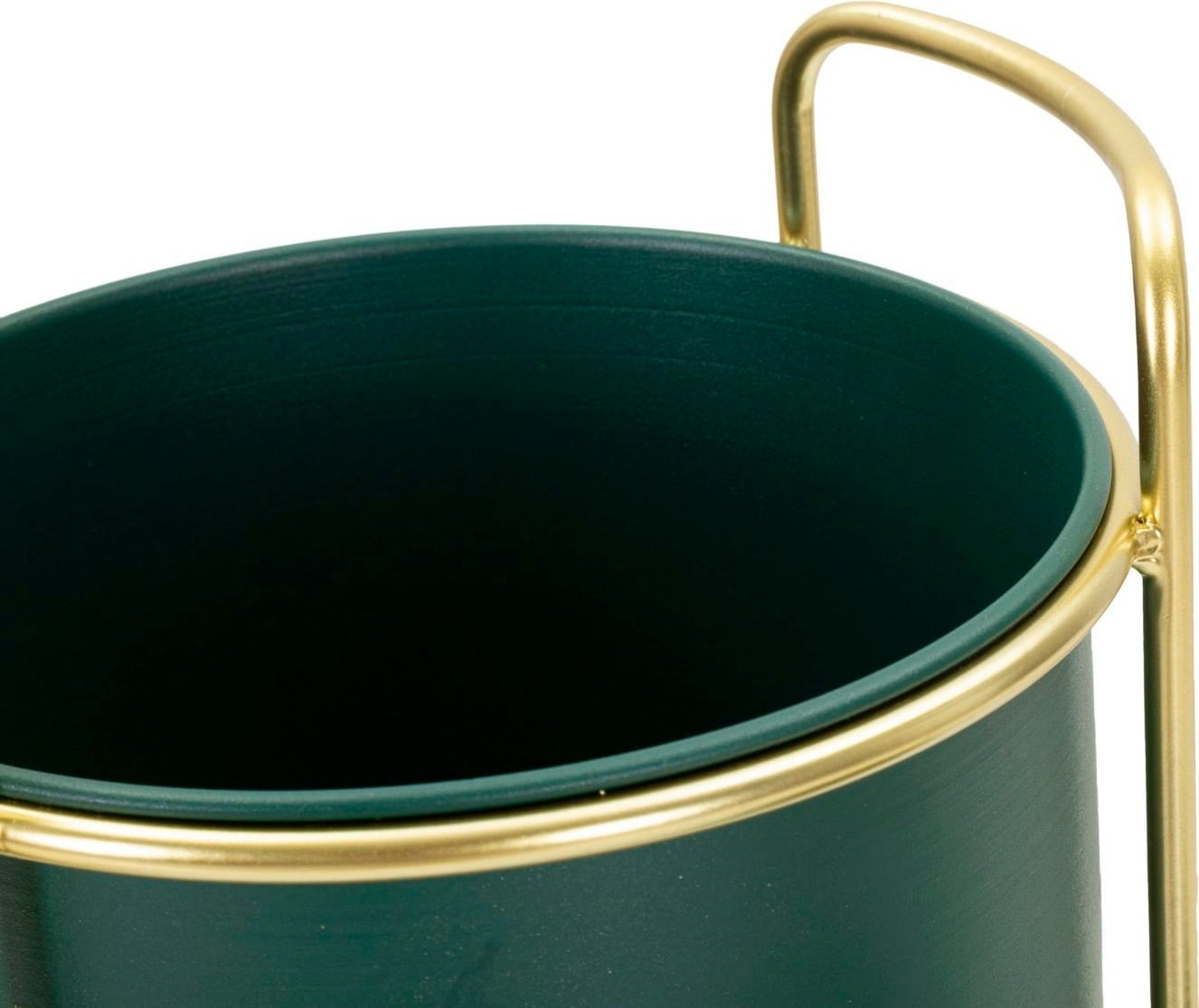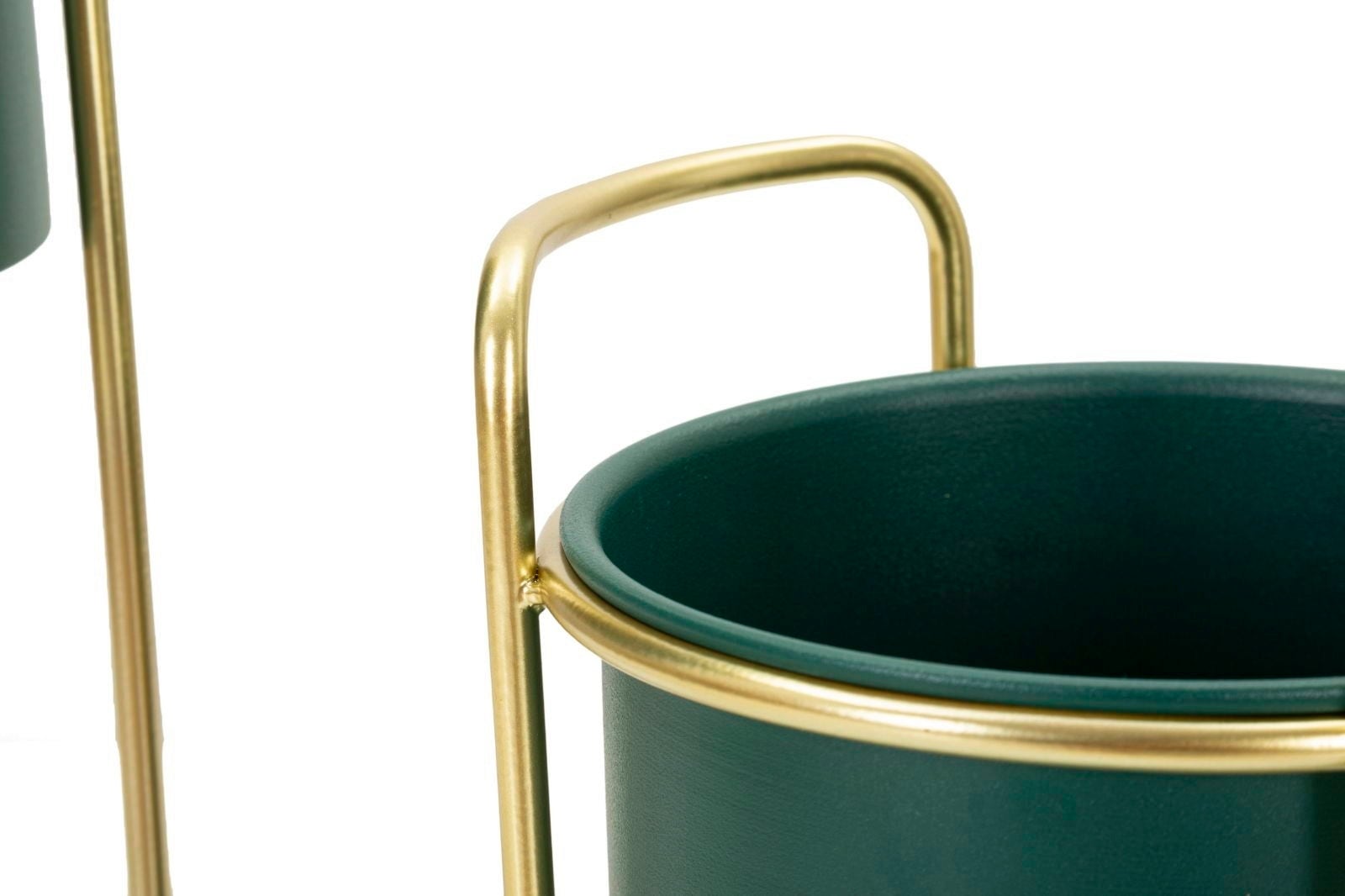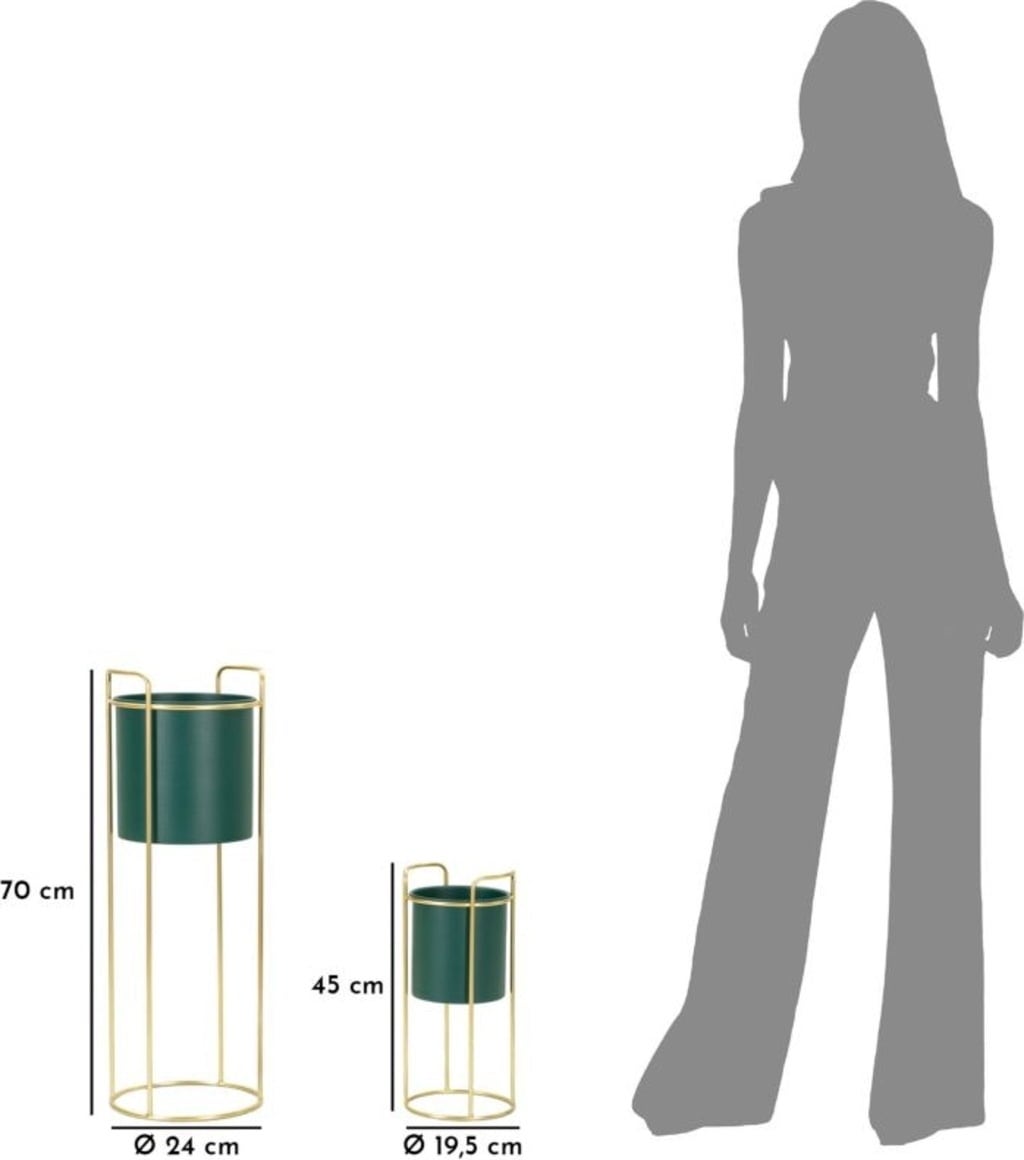 Showcase your favourite plants in style and sophistication with these planters in an elegant set of 2 pots. The modern duo impresses with a deep, rich green colour that contrasts beautifully with the delicate, golden metal stands. This colour scheme immediately gives your rooms a luxurious yet natural touch.