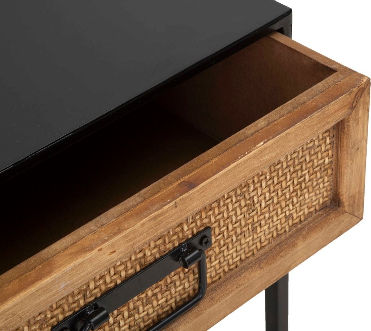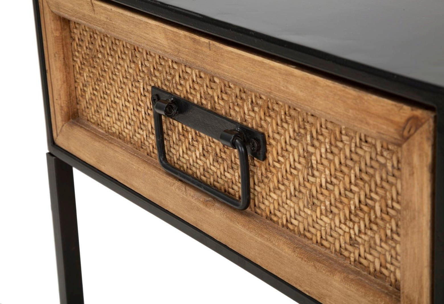 In contrast, the wooden drawer features a front with an elegant rattan-effect weave. The drawer offers discreet storage space for all essential items next to the bed. A piece of furniture that combines aesthetics and practicality with great elegance.