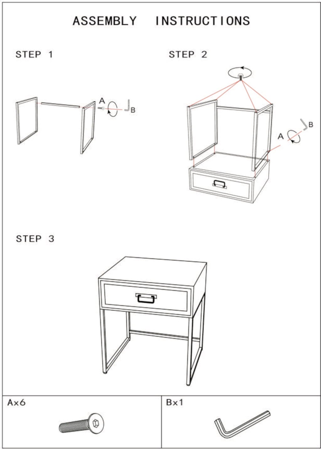 | Special Properties: | Self-assembly including assembly instructions |