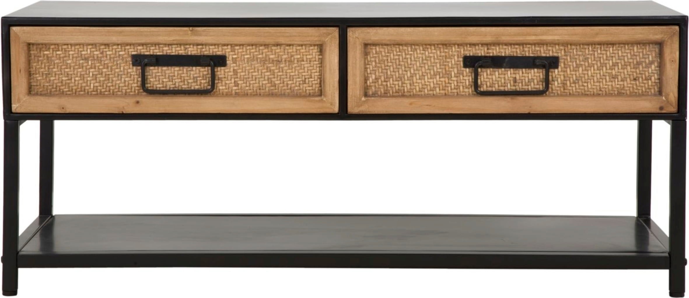 The 2 wooden drawers contrast with this, the fronts of which are refined in a rattan wicker style. This detail gives the lowboard a warm, appealing texture. The drawers provide discreet storage space for accessories and keep the entertainment area neat and stylish.