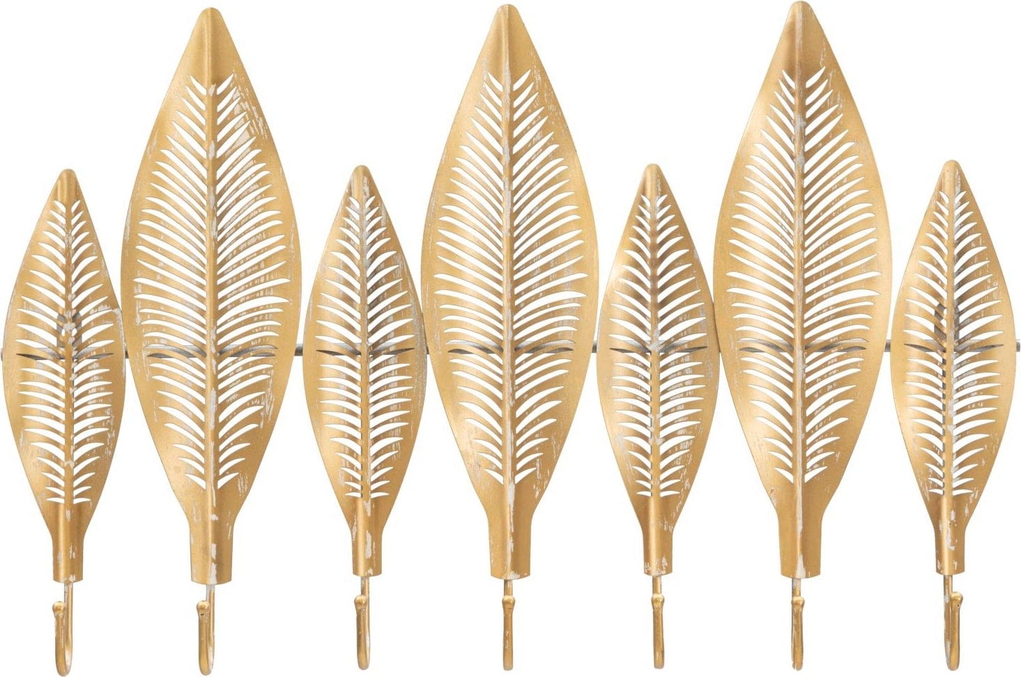 At the end of each leaf is a sturdy hook, providing a total of seven hanging options for jackets, bags, or scarves. The soft patina and the delicate cut-outs in the leaves give the metal a wonderful lightness.