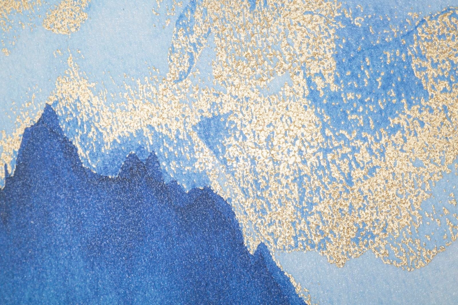 Immerse yourself in a world of peace and elegance with the Mountain Tree canvas print by Mauro Ferretti. This impressionistic artwork transports you to a misty mountain landscape where bold blue tones meet sparkling golden details. It is precisely this gentle contrast that casts your living room or bedroom in a very special light and creates an atmosphere of vastness and magic.