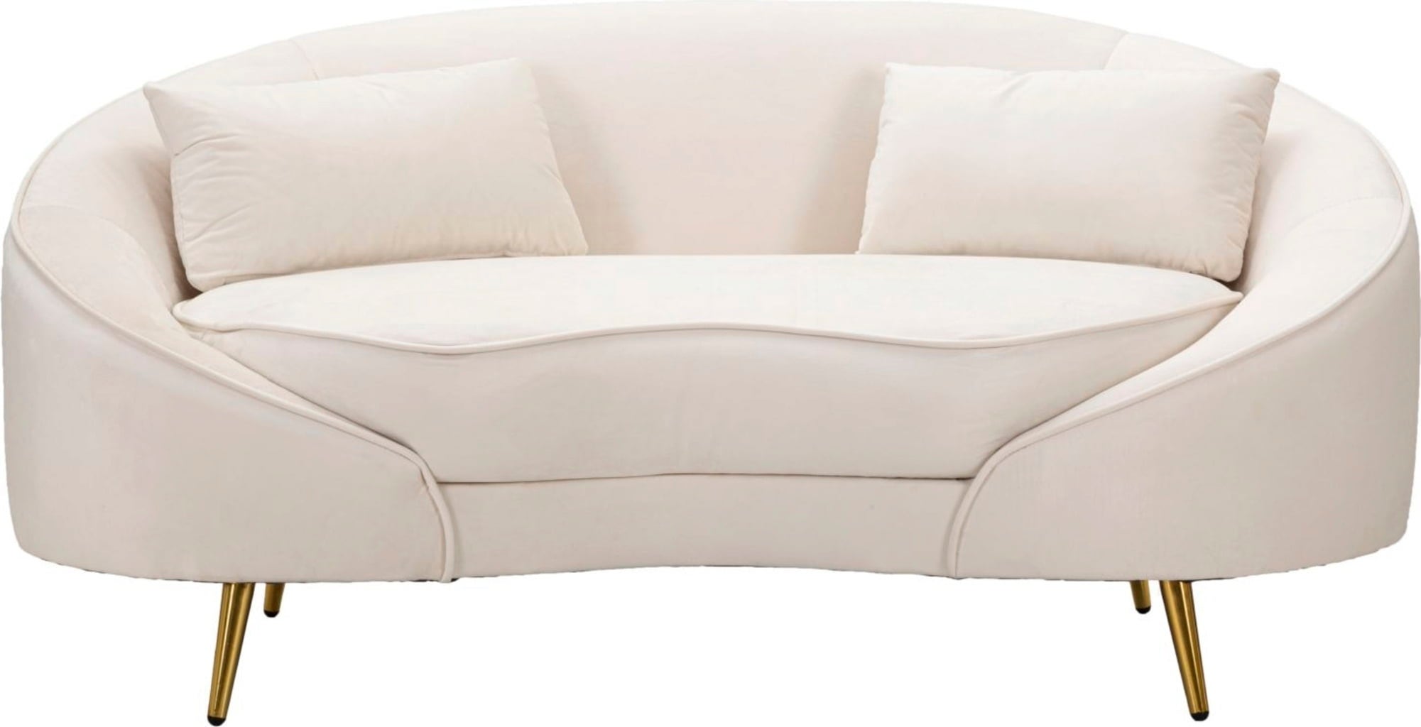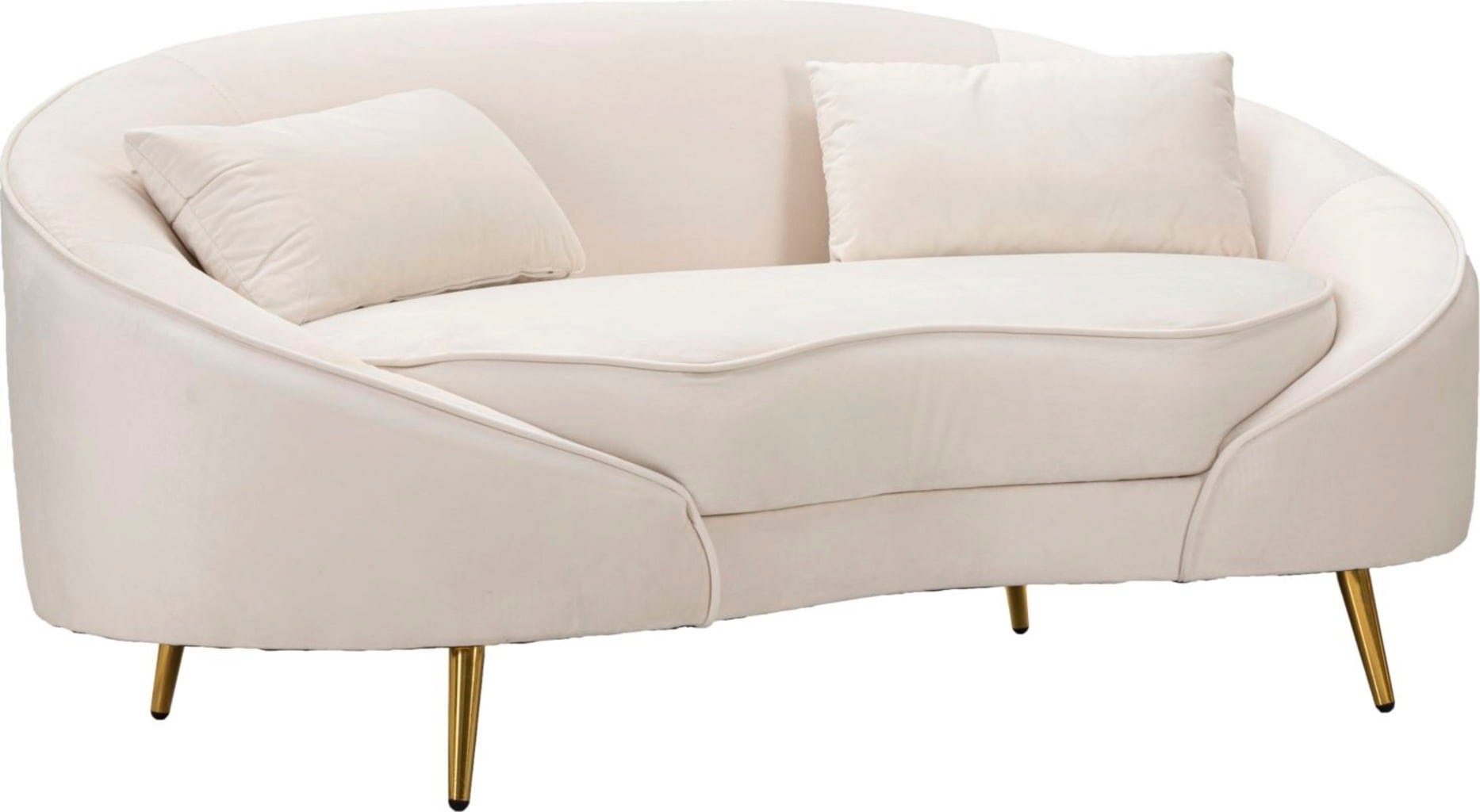 The contemporary design is perfectly complemented by sleek, shiny gold metal legs that give the sofa a modern touch and glamour. A set of 2 matching cushions is included to round off the high level of seating comfort. This sofa is the ideal addition to modern, bright interiors that emphasise design, comfort and an airy atmosphere.