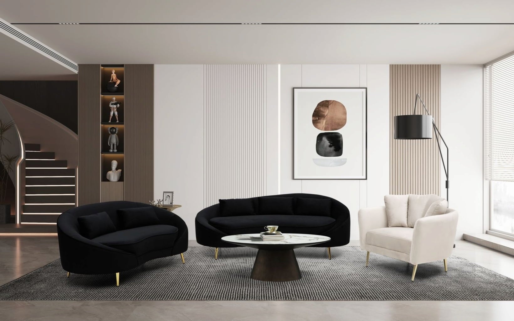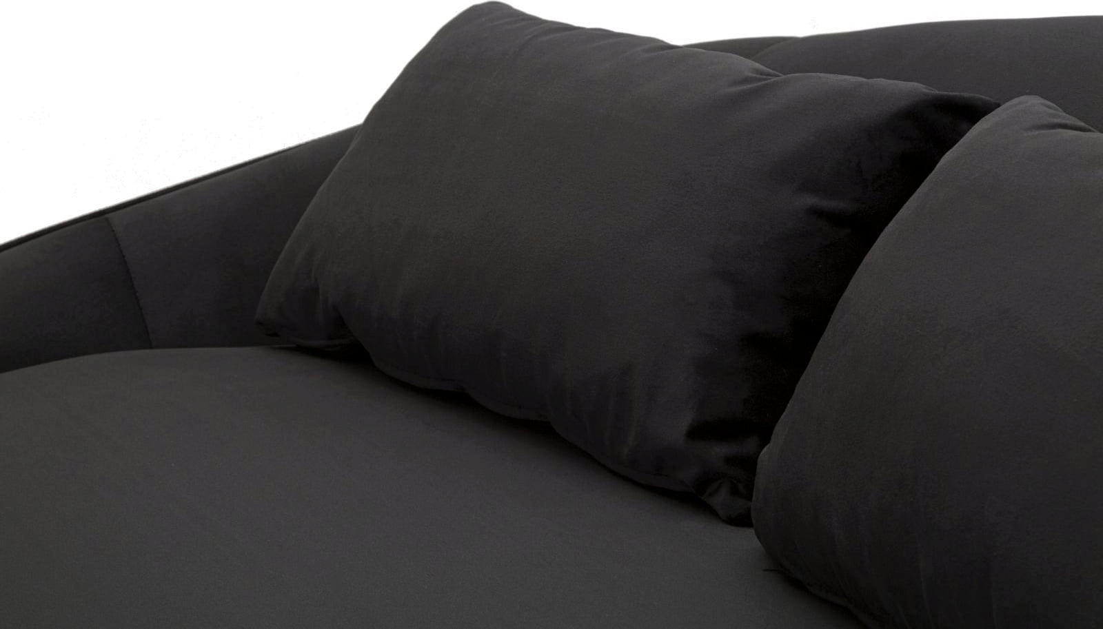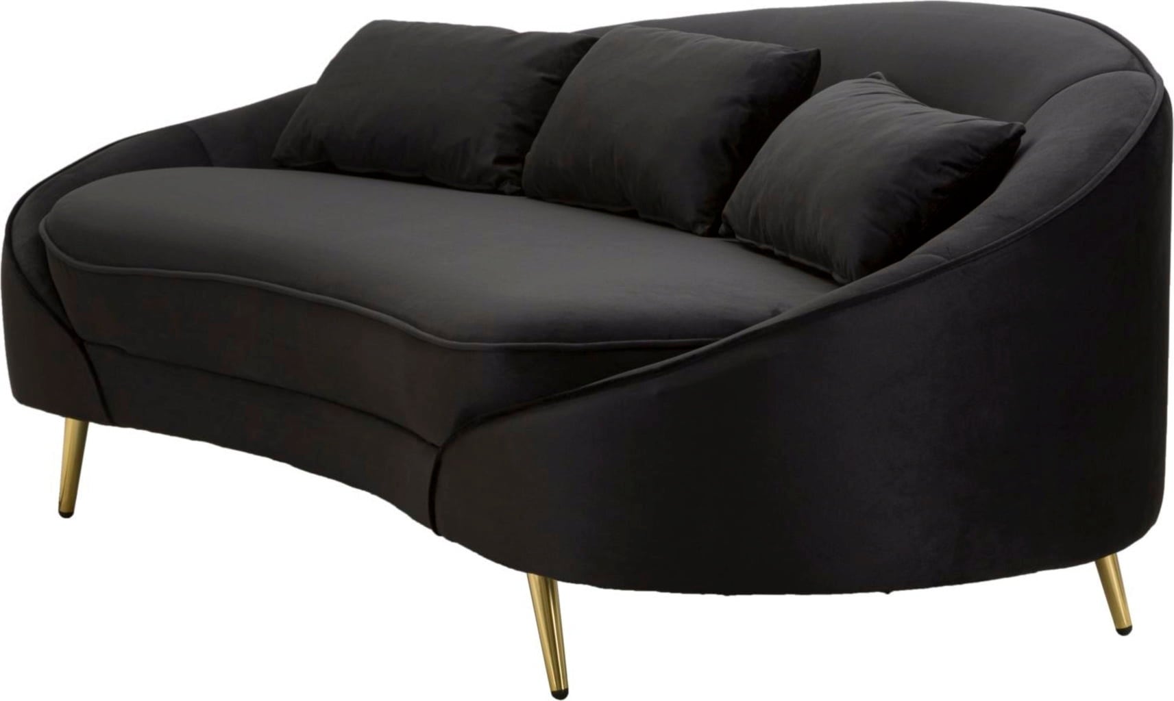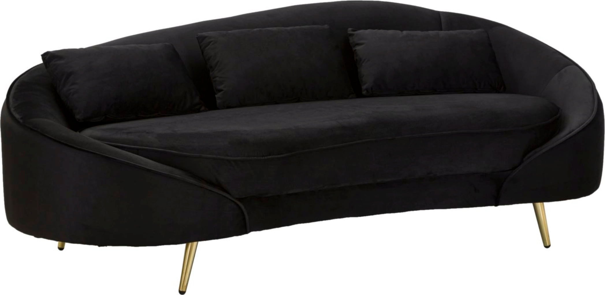 Transform your living room into an oasis of modern glamour with this elegant 3-seater sofa. The luxurious, black velvet-look fabric and the soft, inviting lines of the curved, asymmetrical shape make for an impressive eye-catcher.