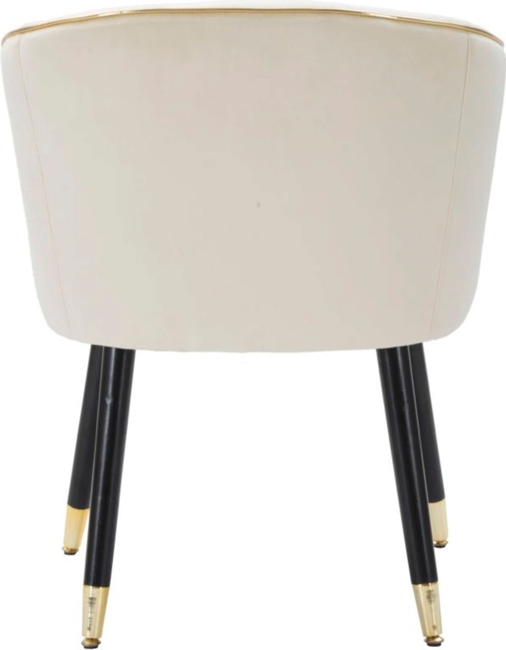 Add a touch of class and relaxing comfort to your room with this elegant armchair. It features a soft, padded fabric cover in a stylish cream colour. The elegant shape is emphasised by a shiny gold piping edging that provides a luxurious accent.