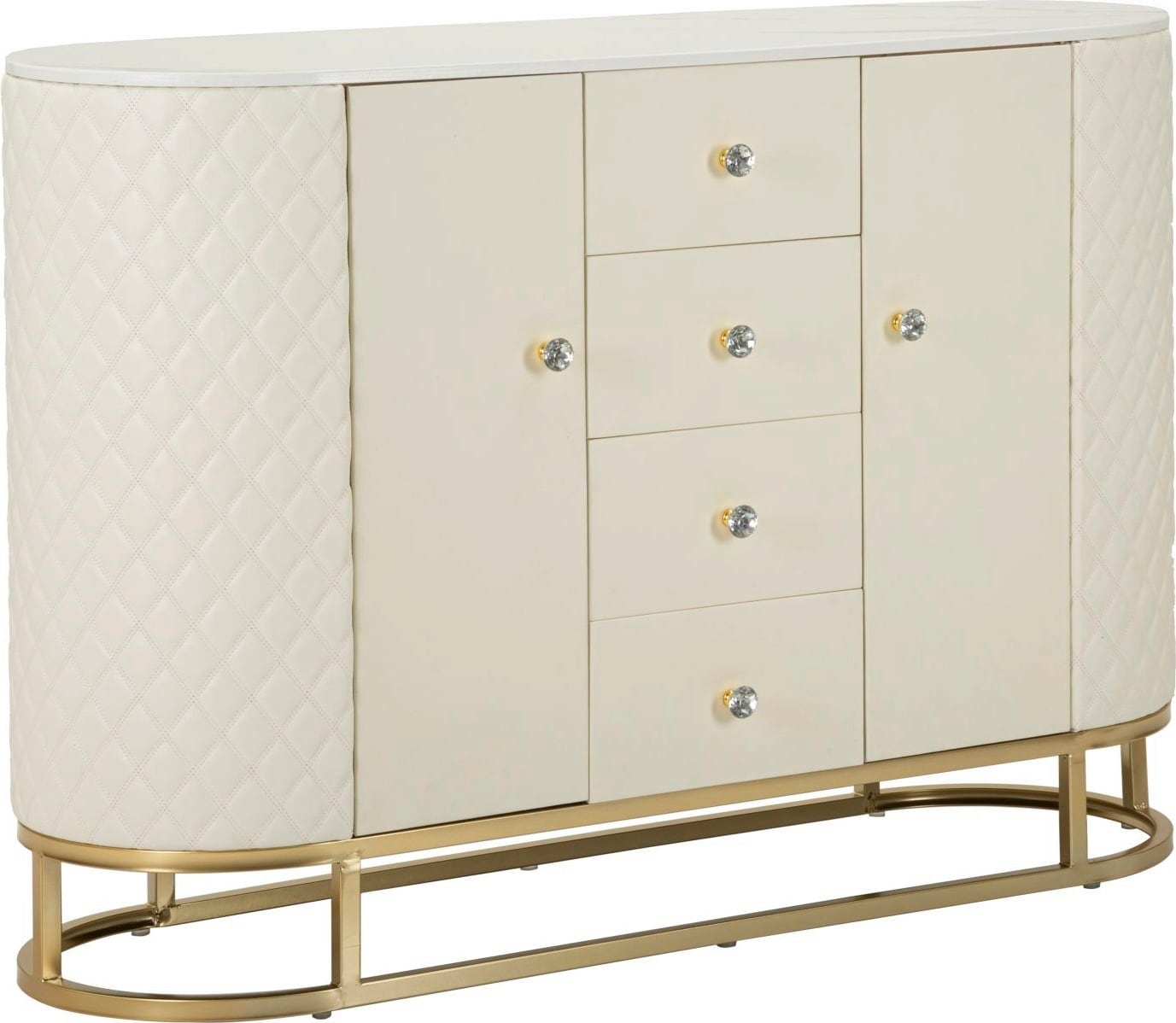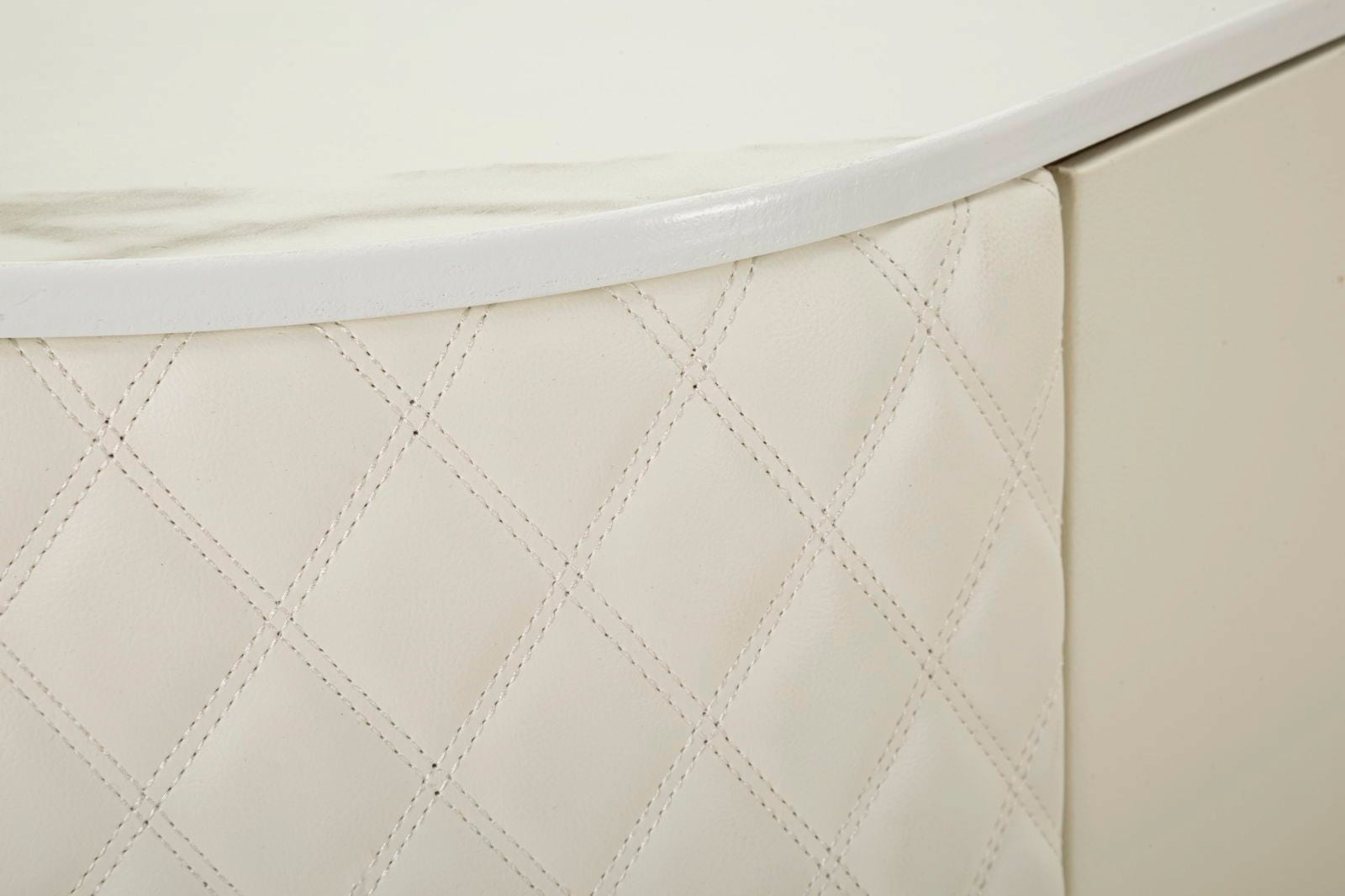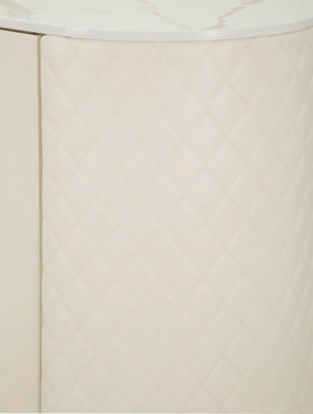 Add an irresistible touch of luxury and modern elegance to your living room or bedroom with this exquisite cabinet. It combines high functionality with an opulent design. The fronts and sides are covered in soft, creamy white faux leather with a fine diamond quilting, giving the piece of furniture a luxurious texture.