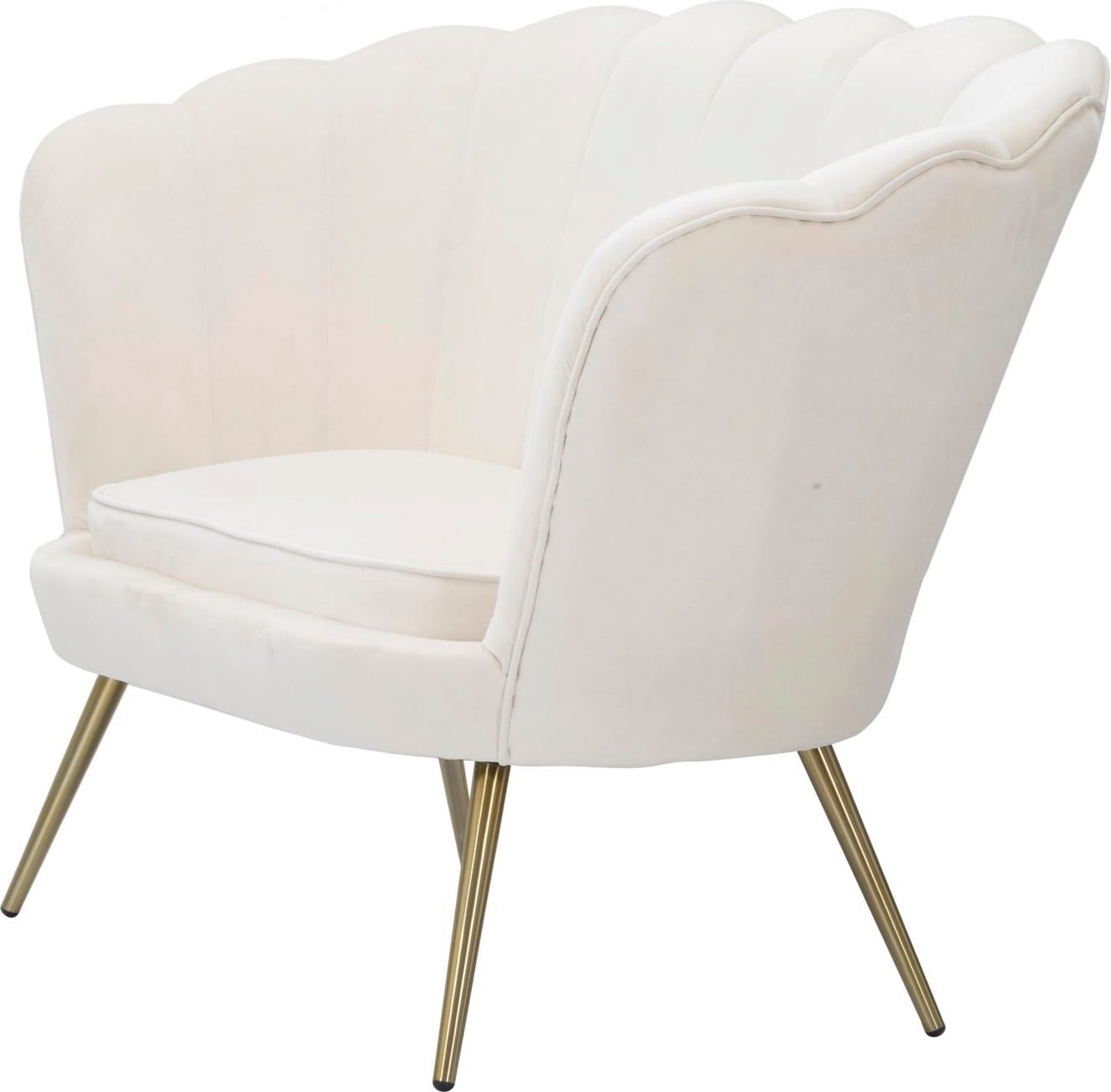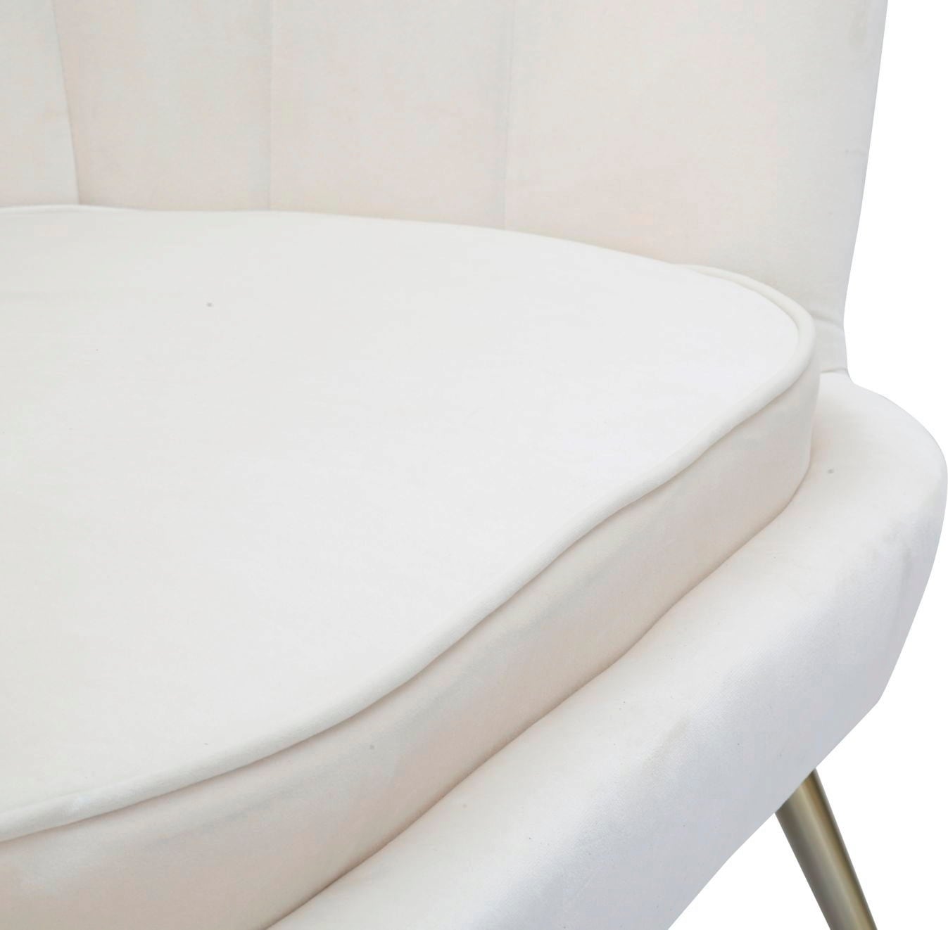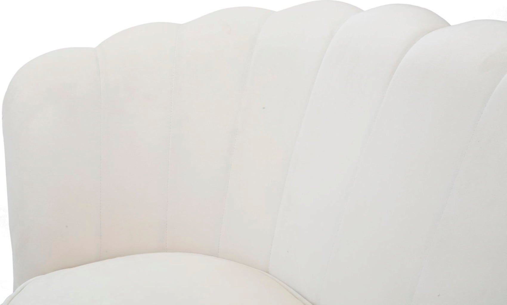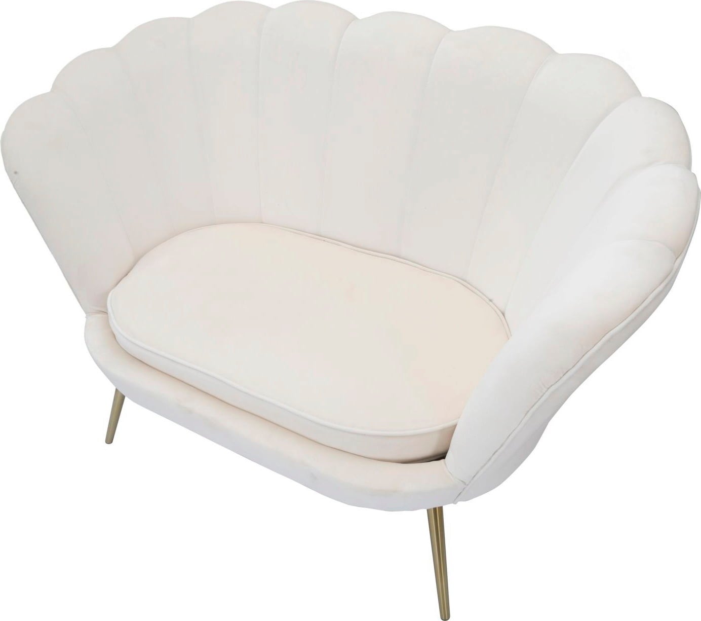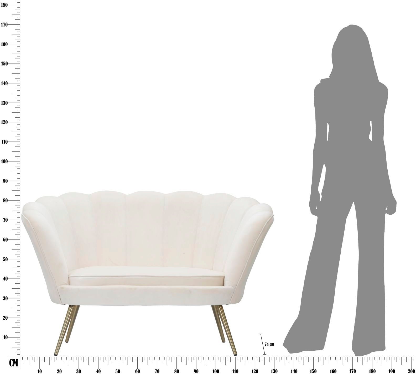 Make a stylish statement in your living room or bedroom with this unusual two-seater sofa. The design impresses with a backrest with a curved shape reminiscent of delicate petals. The cream-coloured velvet cover gives the piece of furniture a sophisticated feel and a soft look.