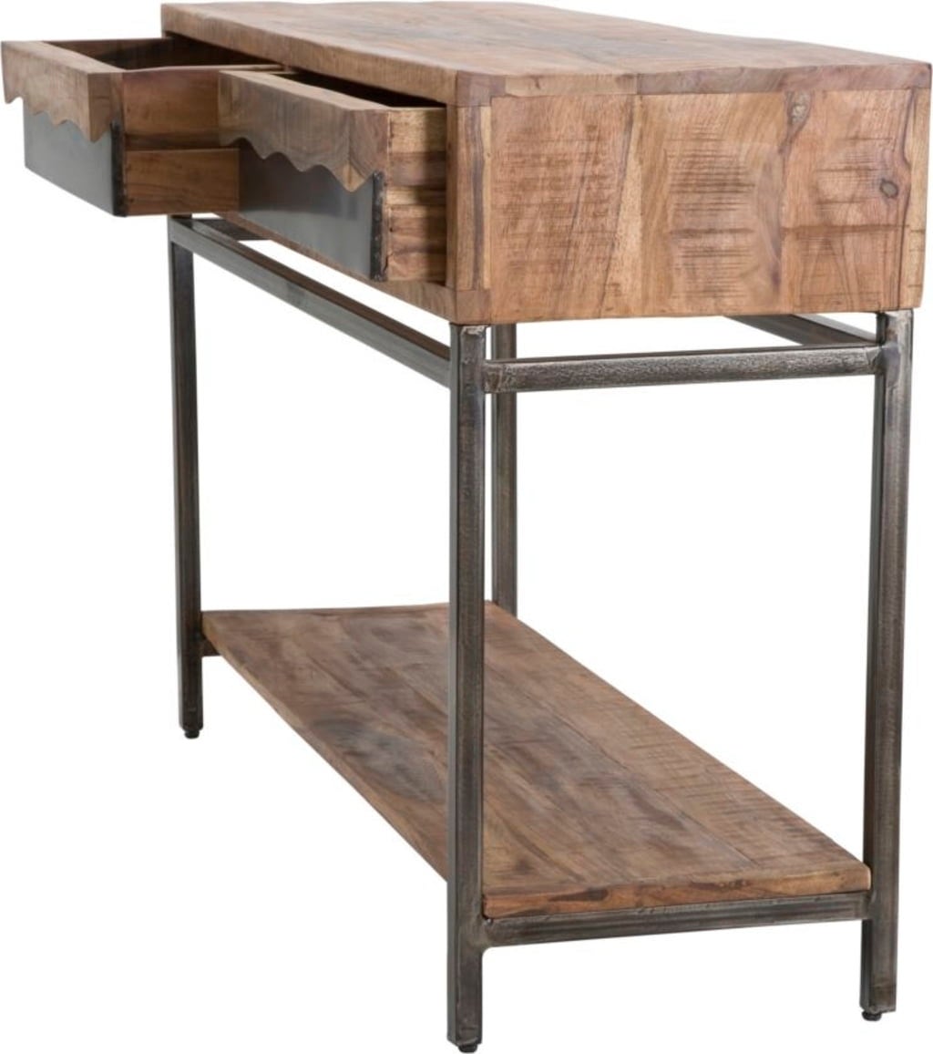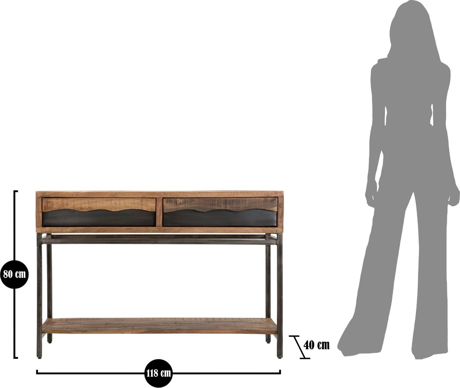 The cabinet offers versatile storage space thanks to the 2 drawers and the lower shelf. The sleek, black metal frame provides a stylish contrast to the warm wood and ensures the necessary stability. This piece is the ideal addition for fans of high-quality materials and expressive designs.