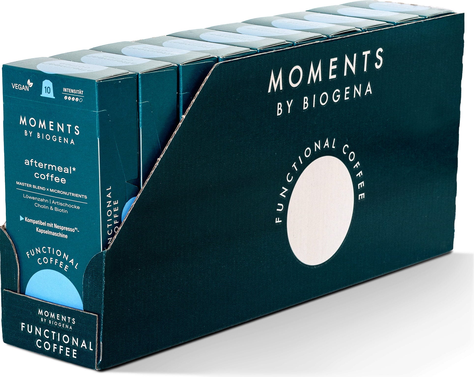 The aftermeal* coffee with dandelion, artichoke, choline and biotin brings a breath of fresh air to the daily coffee experience. The unique flavour combines a carefully developed recipe with a practical and user-friendly application.