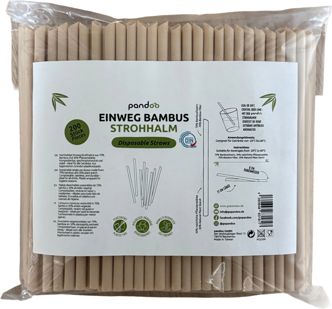 Pandoo Disposable Bamboo Straws, 200 items