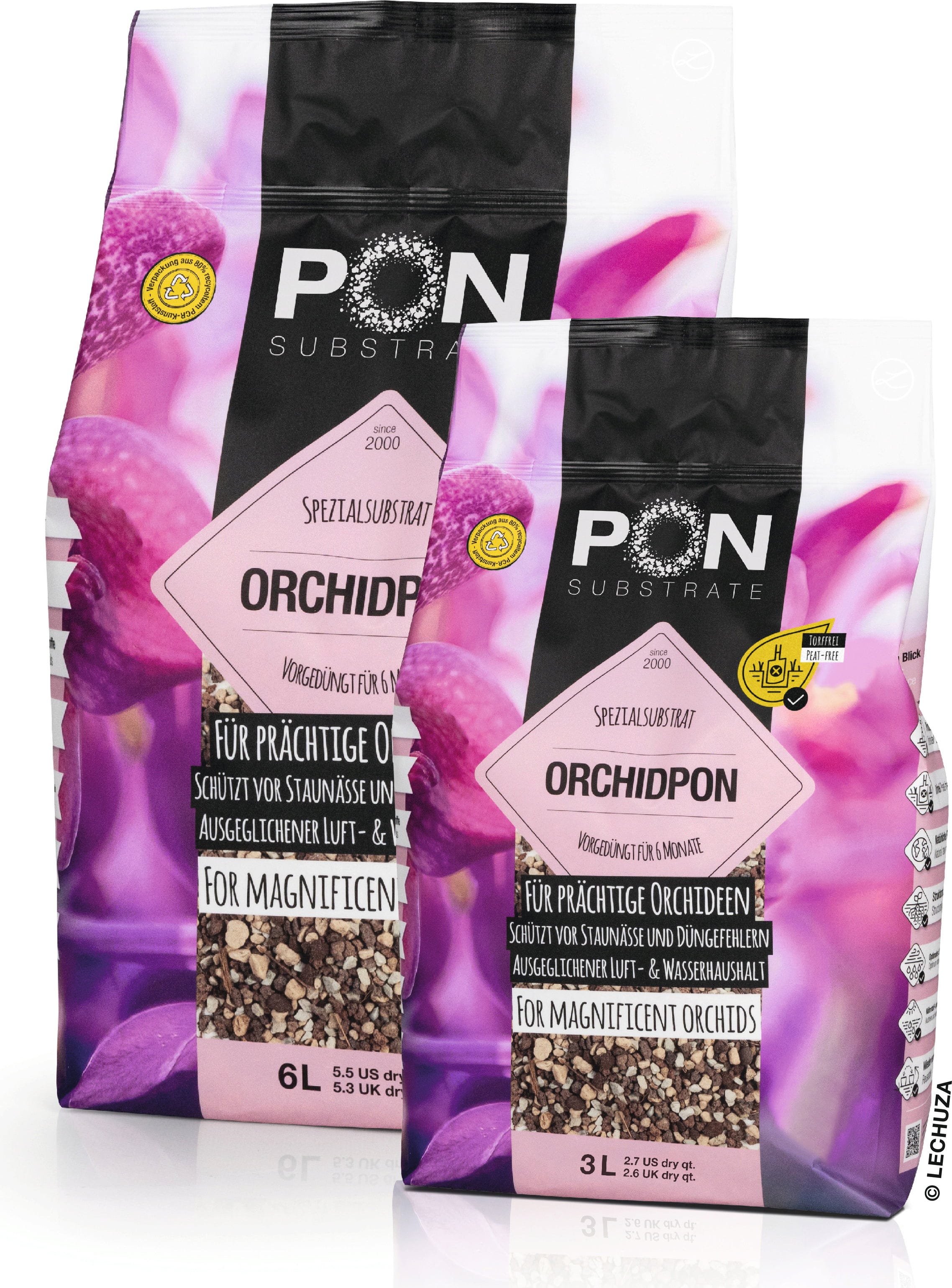 Orchidpon has been specially developed to provide delicate plants with exactly what they need: a slightly acidic growing medium enriched with valuable humic substances and a structure that encourages healthy root development. Thanks to its pre-fertilised formulation, orchids receive optimal nourishment for up to 6 months.