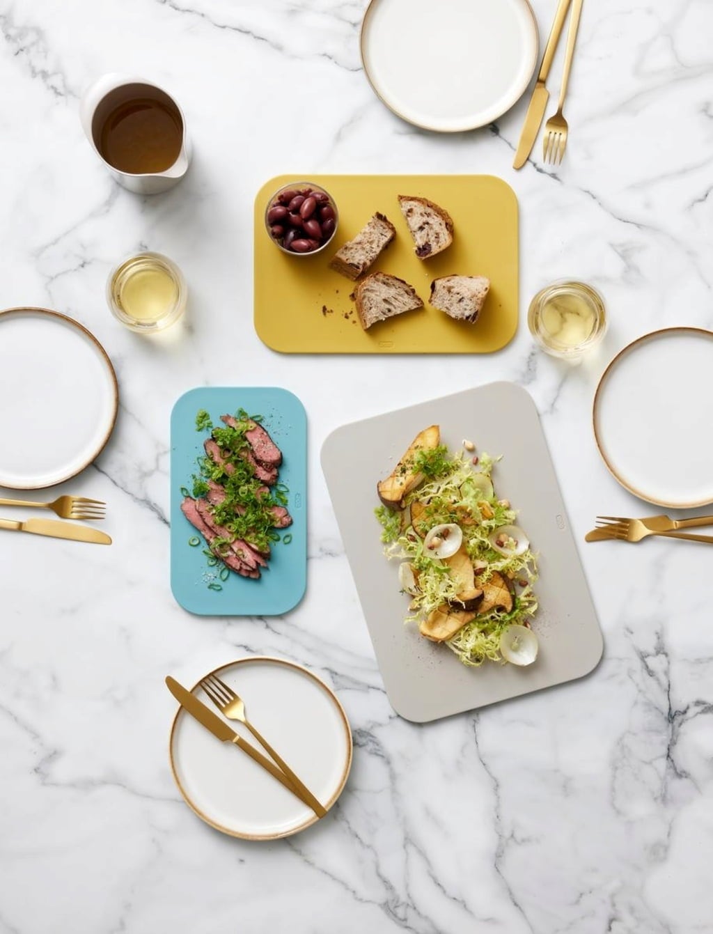 The Choptima chopping board set is a high-quality kitchen accessory in Danish design. The robust material is very resistant to moisture, keeps your knife sharp for longer and is particularly hygienic. With a thickness of 10 mm, the boards are solid, stable and retain their shape - perfect for everyday use.