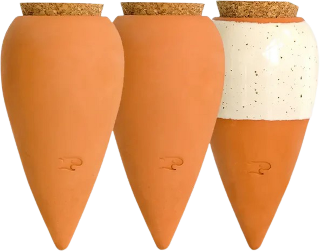 Olla Minis is a pack of 3 ollas which are not only a practical watering accessory for your indoor plants, they are also very decorative. The ceramic cone regulates the water flow and provides a steady, round the clock water supply to your plant.