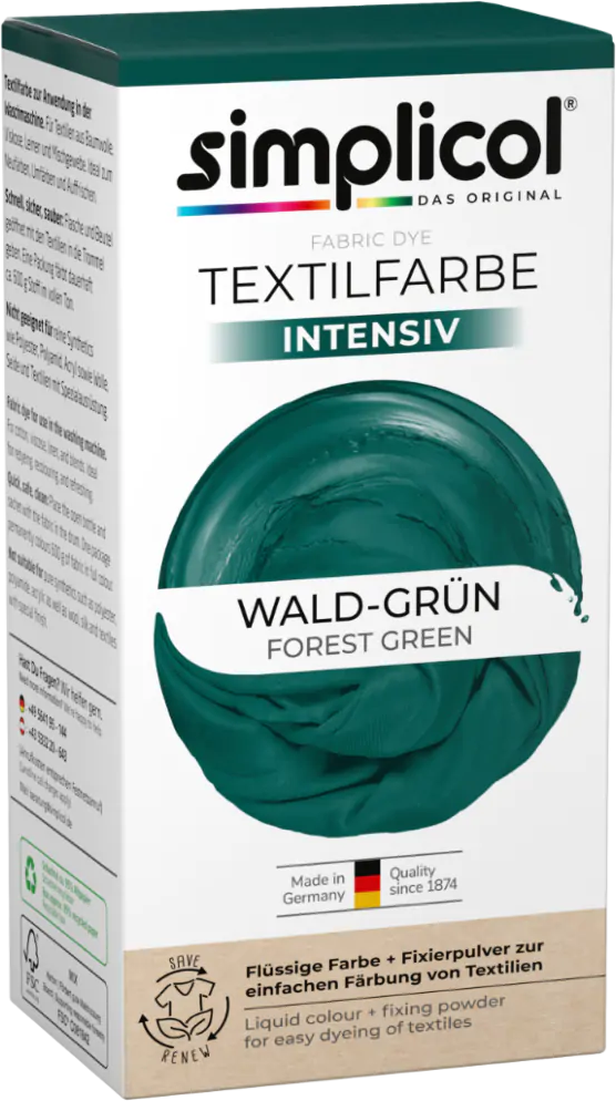 Dyeing, recolouring or refreshing textiles is easy with simplicol 's Textile Dyes INTENSIVE. The liquid dye is placed into the drum of the washing machine, allowing the colour to spread evenly. The result: brilliant, bright colours!