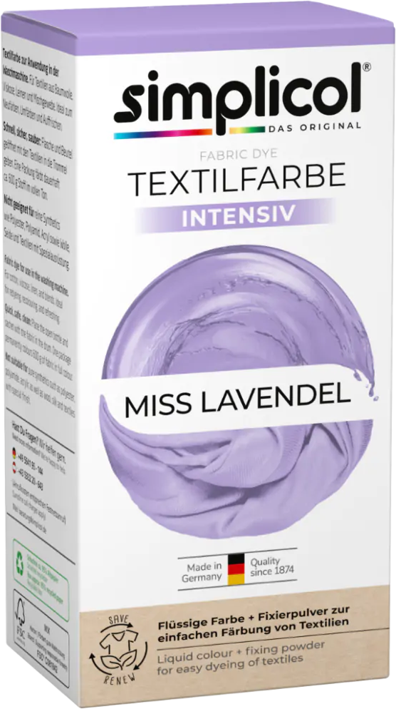 Dyeing, recolouring or refreshing textiles is easy with simplicol 's Textile Dyes INTENSIVE. The liquid dye is placed into the drum of the washing machine, allowing the colour to spread evenly. The result: brilliant, bright colours!