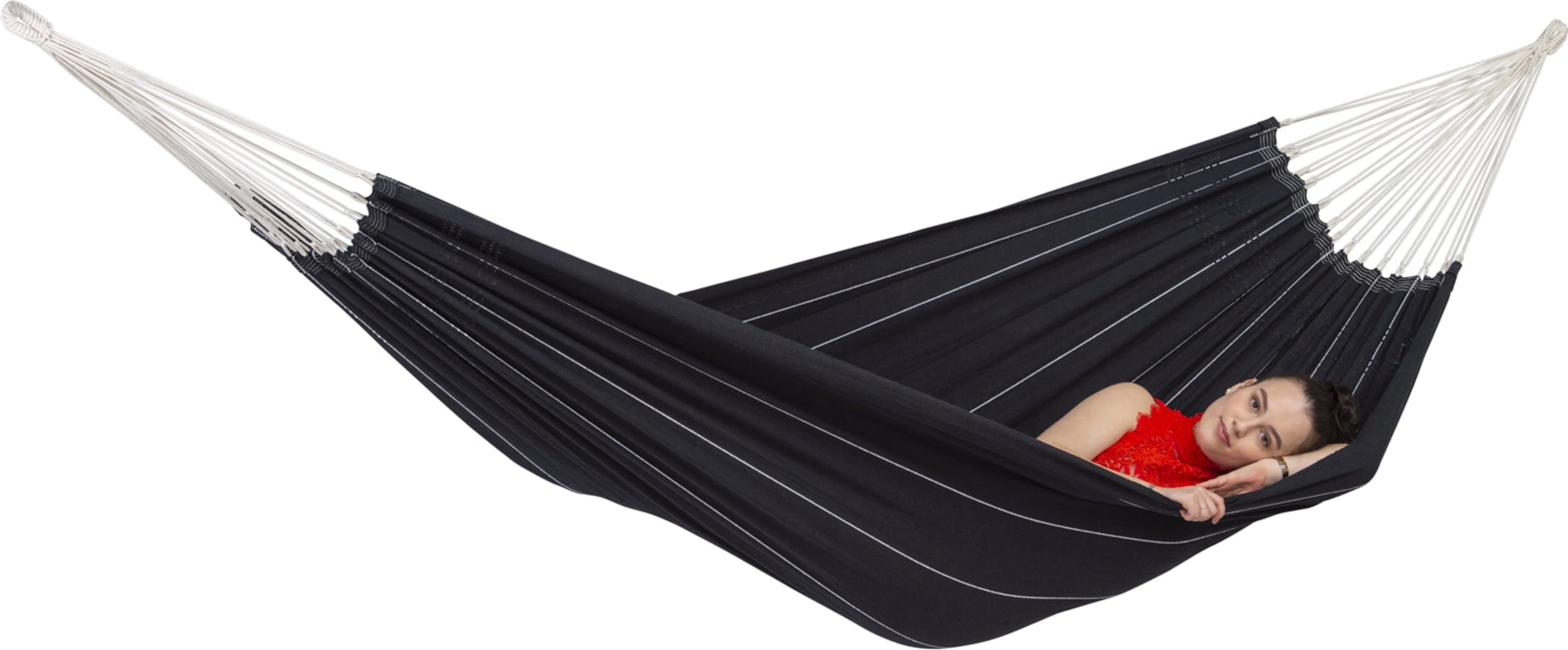 • Le tissu d’une épaisseur de 400 g/m2 peut supporter de lourdes charges jusqu’à 200 kg et garantit la longue durée de vie du hamac.