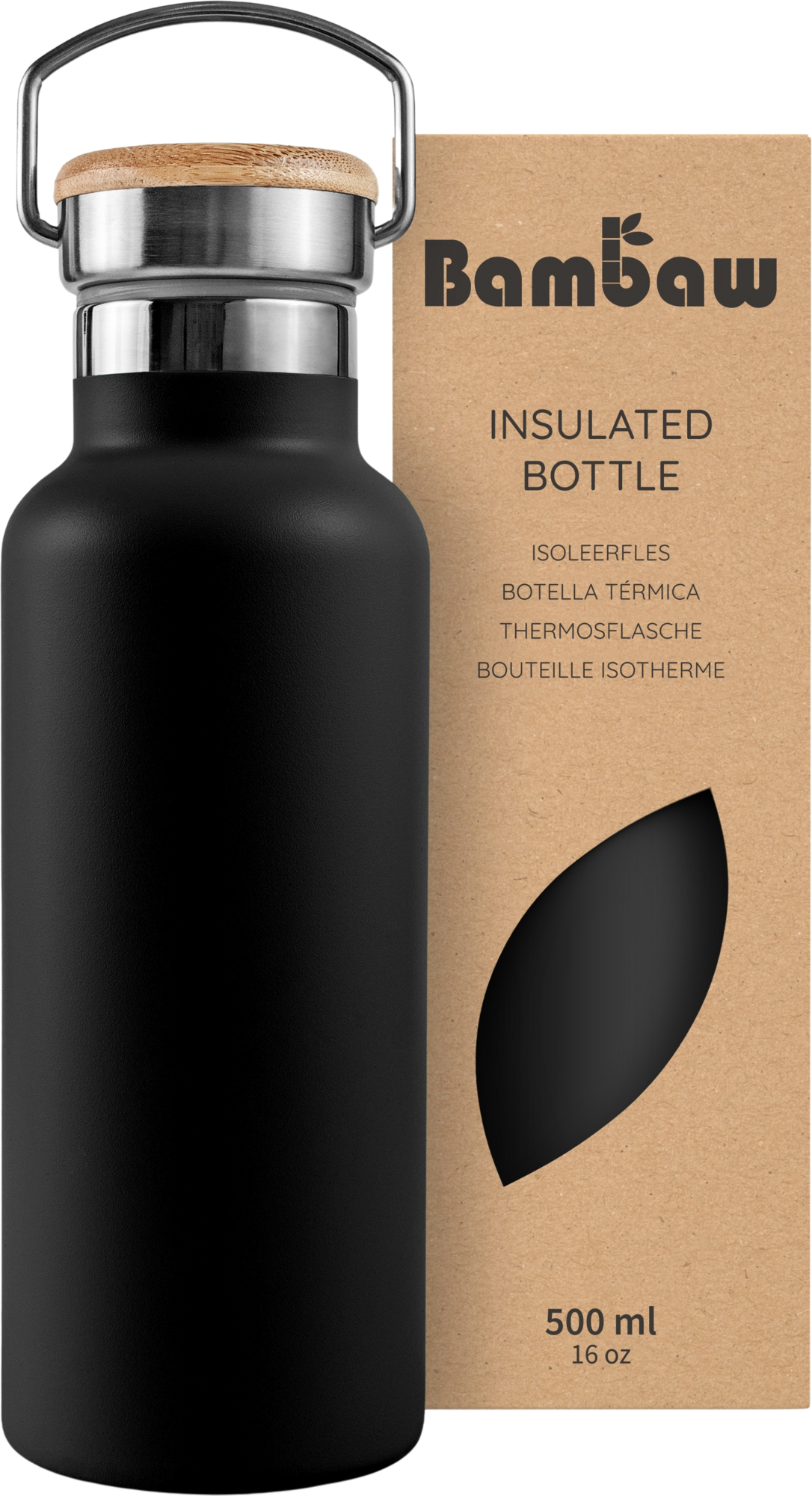 Bambaw Bouteille Isotherme en Inox 500 ml, Jet Black