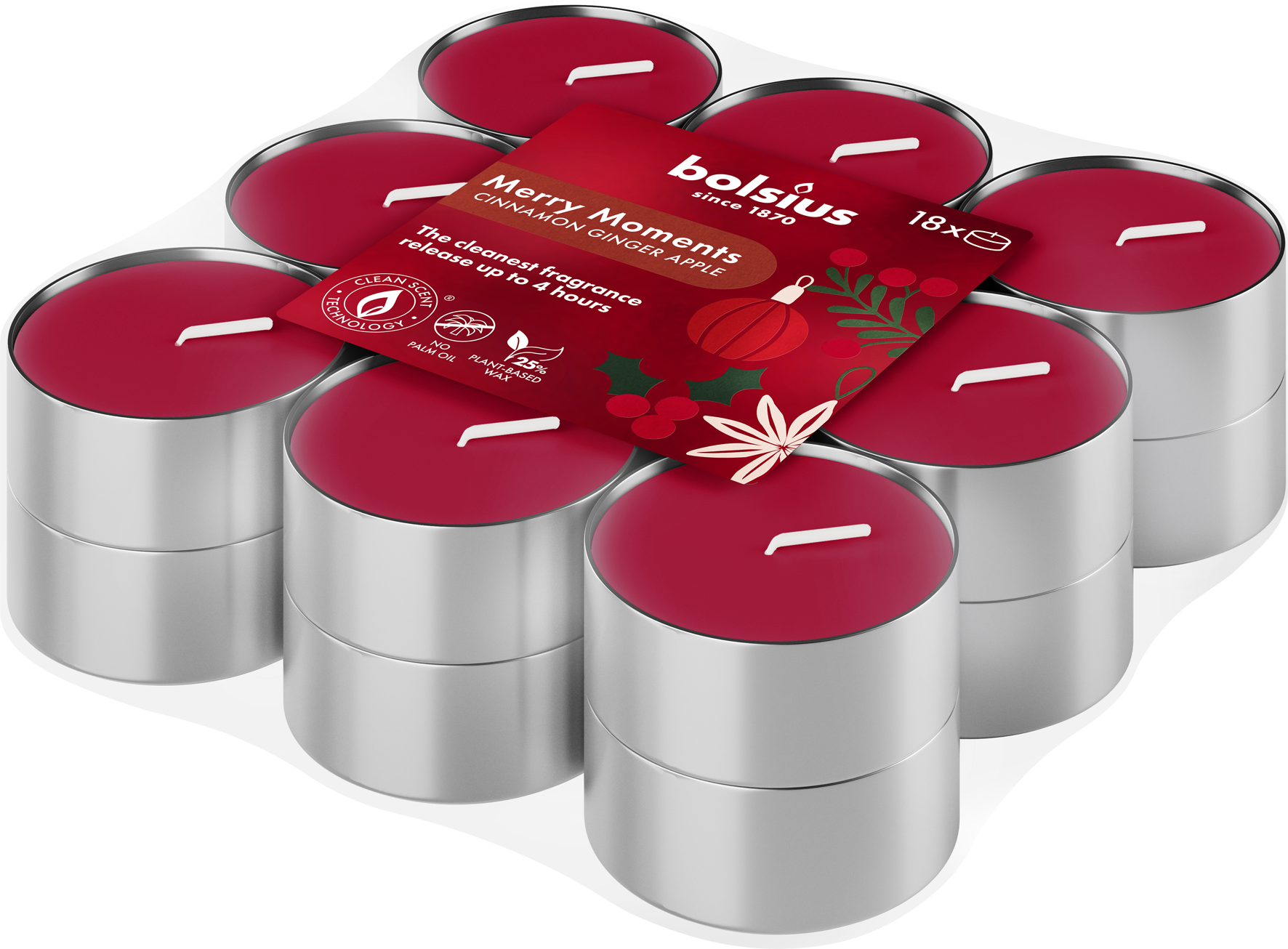 bolsius Bougies à réchaud parfumées True Glow Merry Moments, Bougies Chauffe-plat 4h / Lot de 18