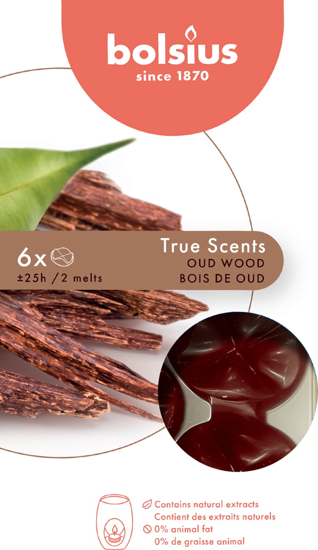 bolsius True Scents Waxmelts (paquet de 6), Bois de Oud