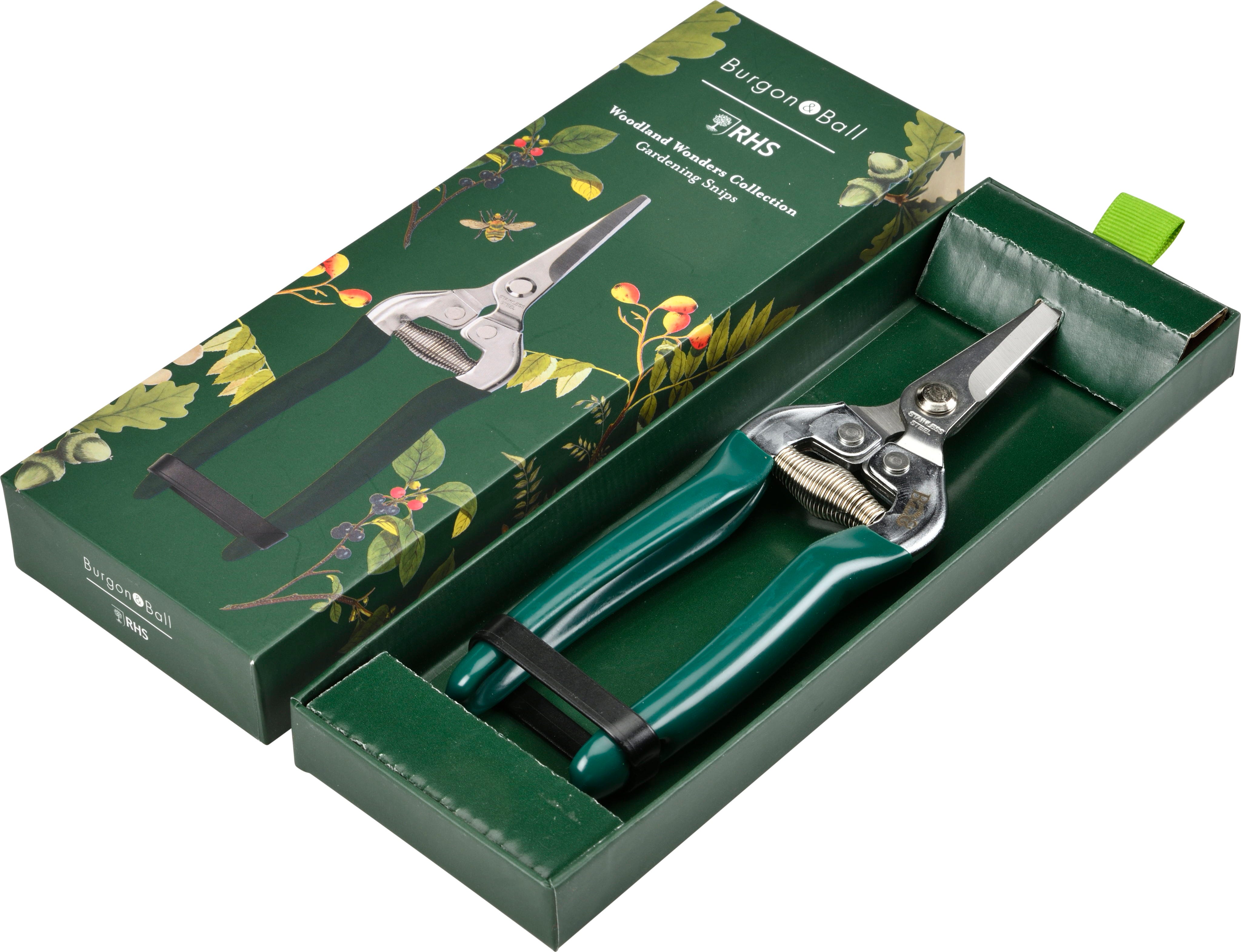 Les poignées vert forêt s’accordent parfaitement avec le design « Woodland Wonders », dont les motifs forestiers historiques issus des archives RHS diffusent une atmosphère apaisante. Livré dans une élégante boîte coulissante sans plastique, ce sécateur constitue un cadeau idéal pour tous ceux qui apprécient la fonctionnalité haut de gamme associée à une esthétique nostalgique.