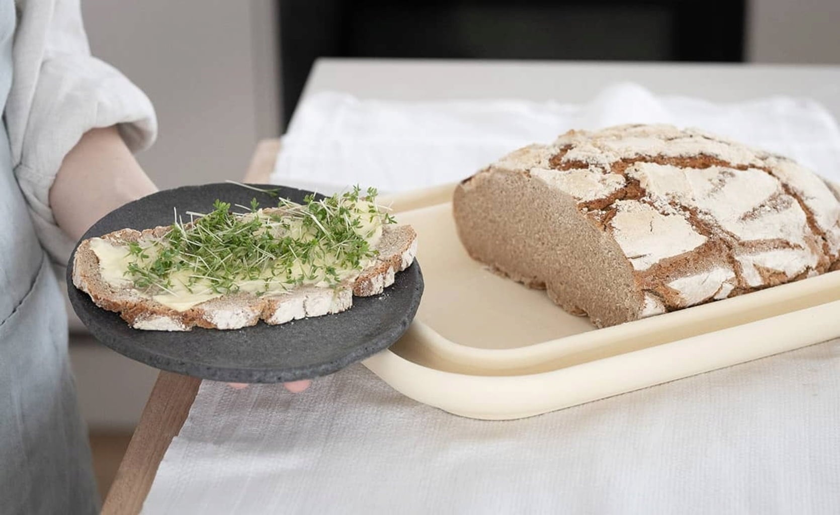Pour un bon pain maison, il faut des ingrédients et des accessoires de qualité. Avec le moule breveté Bread & Cake XL, DENK propose un accessoire unique qui facilite la cuisson du pain, le rendant croustillant à l'extérieur et moelleux à l'intérieur. La rainure de cuisson brevetée - véritable secret de ce moule - doit être remplie d'eau avant la cuisson, assurant ainsi une évaporation homogène dans le four.