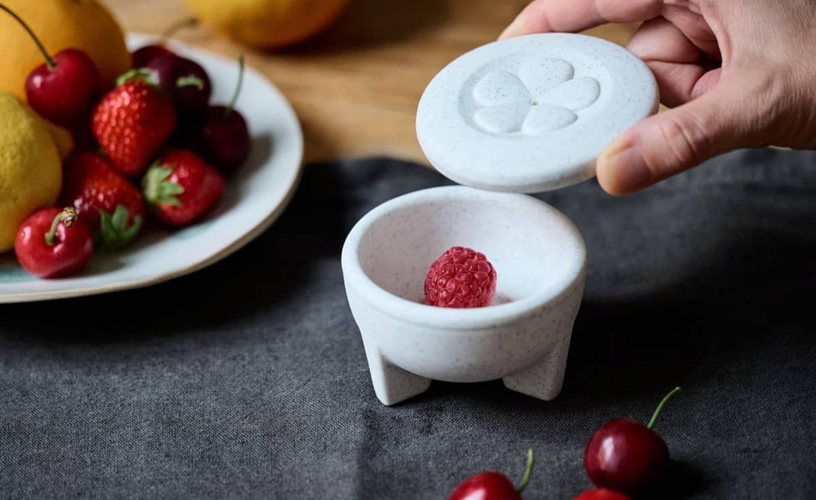 Une manière naturelle et élégante de dire adieu aux mouches des fruits. Remplie d’un morceau de fruit et de quelques gouttes de vinaigre, la coupelle attire les insectes : ils entrent par l’orifice et ne peuvent plus s’échapper. Il suffit ensuite d’ouvrir le couvercle à l’extérieur de votre maison pour les relâcher.
