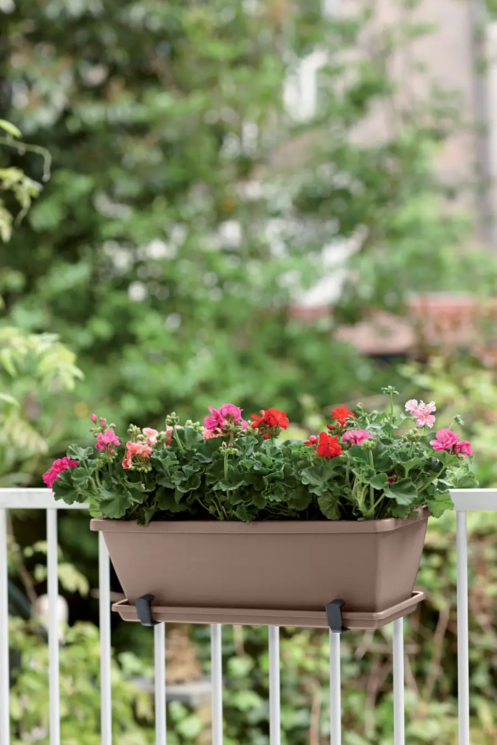 La santé de vos fleurs et de vos plantes est une priorité chez elho. C'est pourquoi vous trouverez une soucoupe adaptée à chacune de vos balconnières. La soucoupe représente le meilleur système d'irrigation pour vos plantes et les protègent de manière optimale contre la pourriture des racines. Elle prévient également les taches d'eau disgracieuses sur le sol.