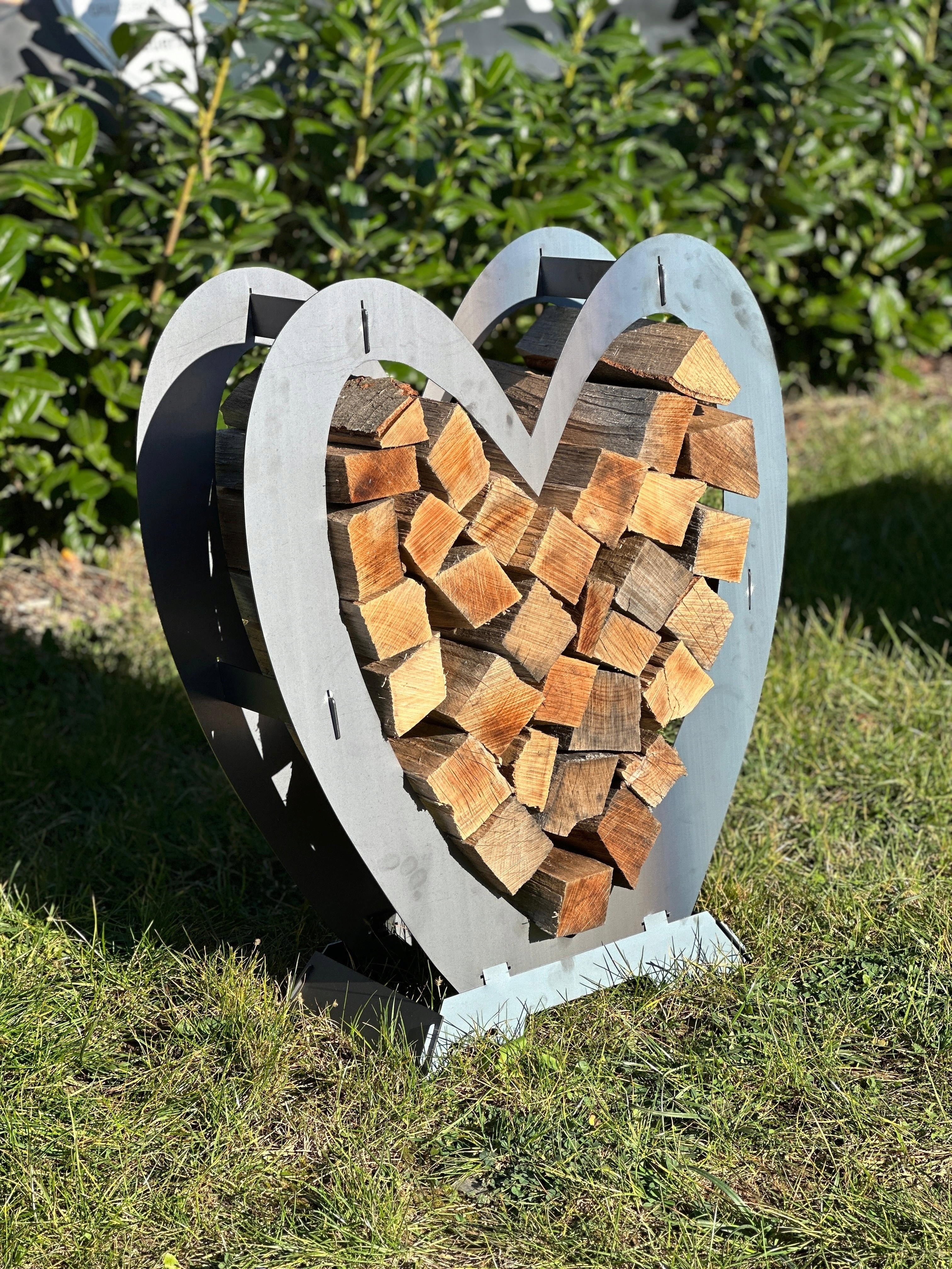 Ce range-bûches en forme de cœur, imaginé avec soin par GuC, est aussi joli dans un intérieur que comme élément décoratif en extérieur !