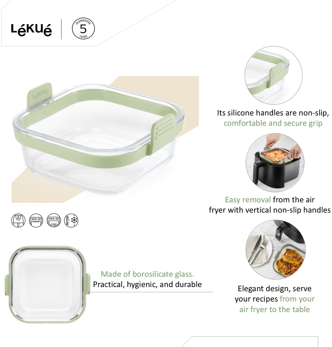 Ce récipient multifonction en verre borosilicaté est idéal pour une cuisson douce dans la friteuse à air, mais aussi au four ou au micro-ondes. Grâce à son design épuré avec poignées amovibles, vous pouvez servir directement à table.