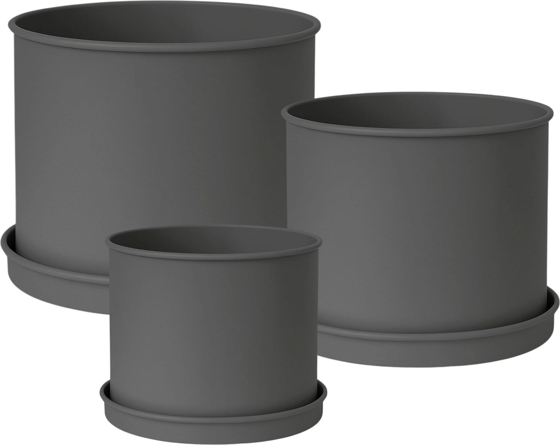 Livlig53 Lot de 3 Pots de Fleurs en Métal avec Soucoupes, anthracite