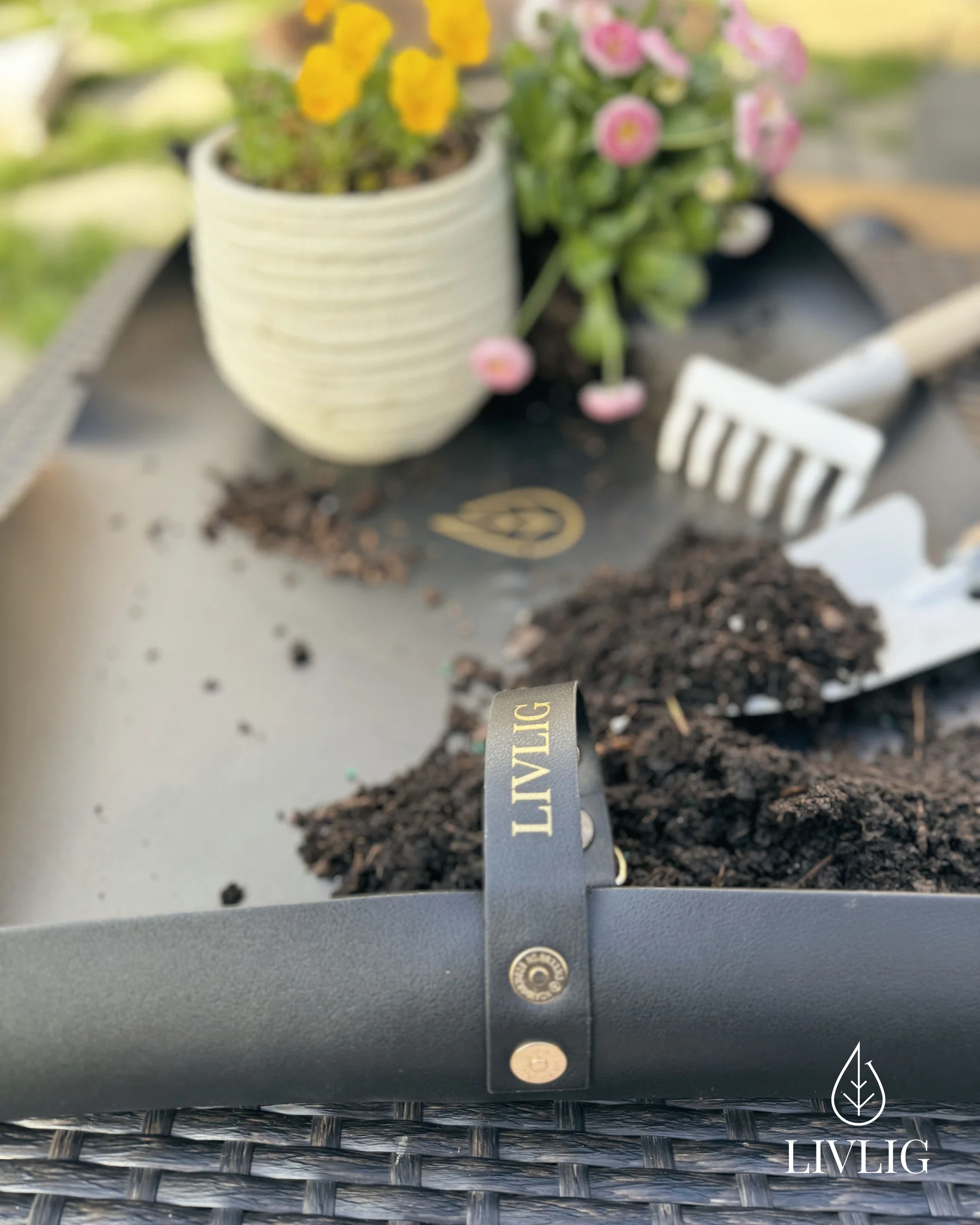Ce tapis de plantation élégant est idéal pour vos activités de jardinage, que ce soit à l'intérieur, sur le balcon ou la terrasse. Le matériau de qualité en similicuir dispose de bords scellés, est antidérapant et hydrofuge. Les aimants situés sur les bords facilitent la mise en place des bords du tapis et la collecte de la terre.