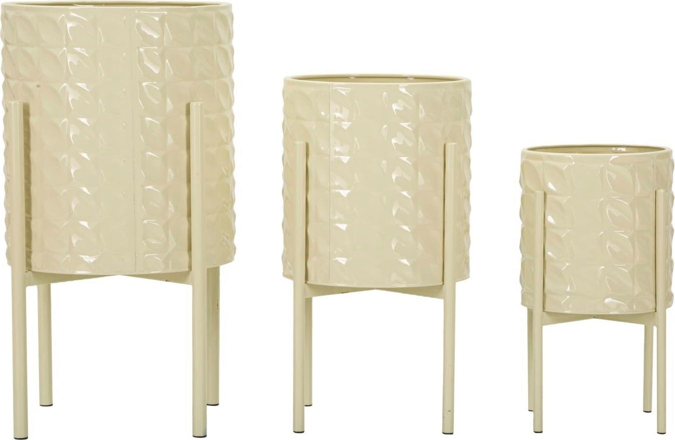 Chaque jardinière est également orné d'un élégant motif en relief géométrique, qui ajoute une texture luxueuse. Qu'il soit placé séparément ou ensemble, cet ensemble est parfait pour mettre en scène vos plantes avec style et donner une touche moderne et vivante à chaque ambiance.