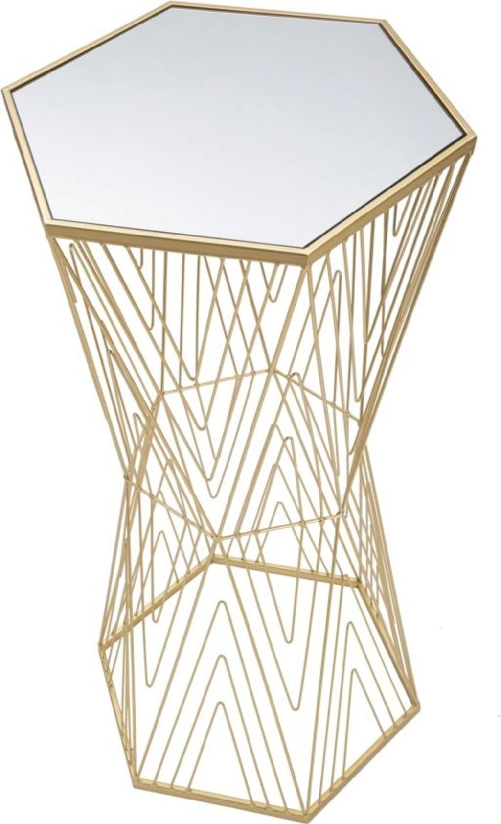 Sublimez votre espace avec la table d’appoint Lines de Mauro Ferretti, une pièce qui réunit parfaitement fonctionnalité et art contemporain. Cette table hexagonale en métal doré séduit par sa silhouette singulière, évoquant une sculpture en forme de sablier.