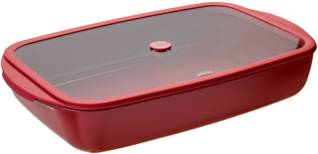 Pebbly Plat Rectangulaire en Verre avec Couvercle en Verre et Silicone, 3,6 L, Cerise