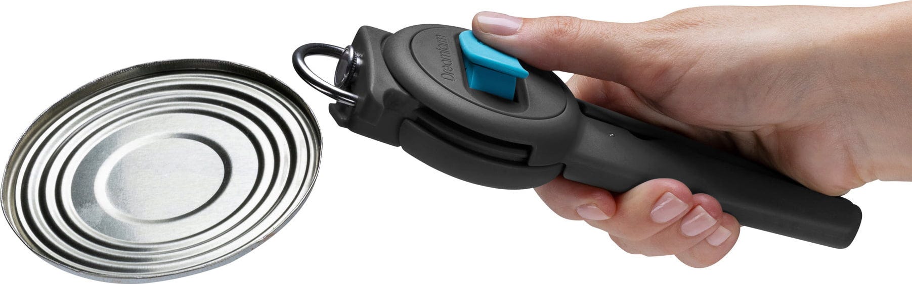 Avec l’ouvre-boîte Dopener de Dreamfarm, un ouvre-boîte innovant 3-en-1 est à disposition et fonctionne presque tout seul en serrant simplement les poignées. La roulette en acier inoxydable trempé découpe avec une grande précision sans laisser de bords tranchants, tandis que l’aimant intégré permet de soulever le couvercle après l’ouverture de manière hygiénique et sans contact.