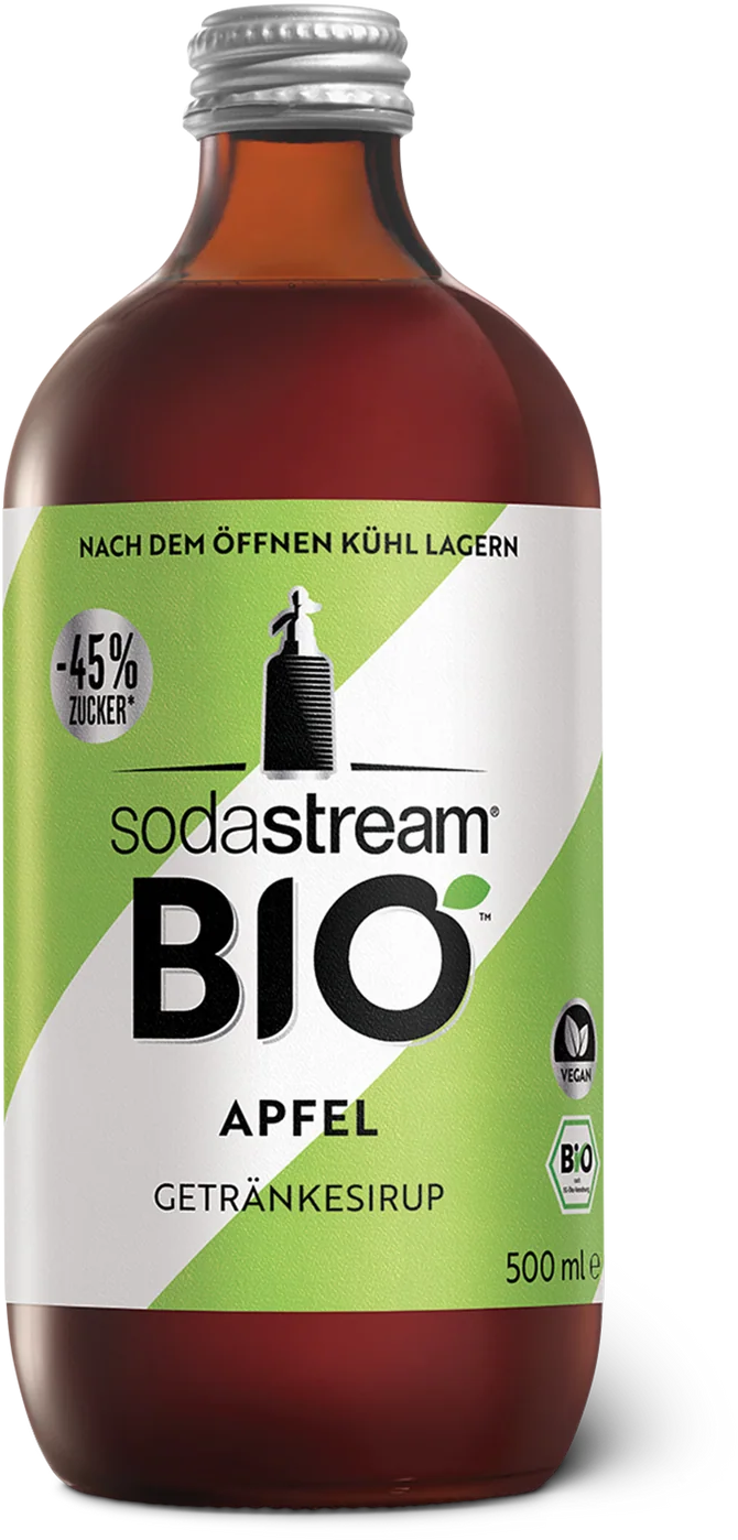 Le Sirop de Pomme Bio de Sodastream garantit un rafraîchissement parfait lors des chaudes journées d'été. Il suffit de mélanger un peu de sirop avec de l'eau et de déguster la boisson désaltérante obtenue. Une bouteille de sirop de 500 ml permet d'obtenir environ 3,5 litres de boisson prête à l'emploi ensuite.