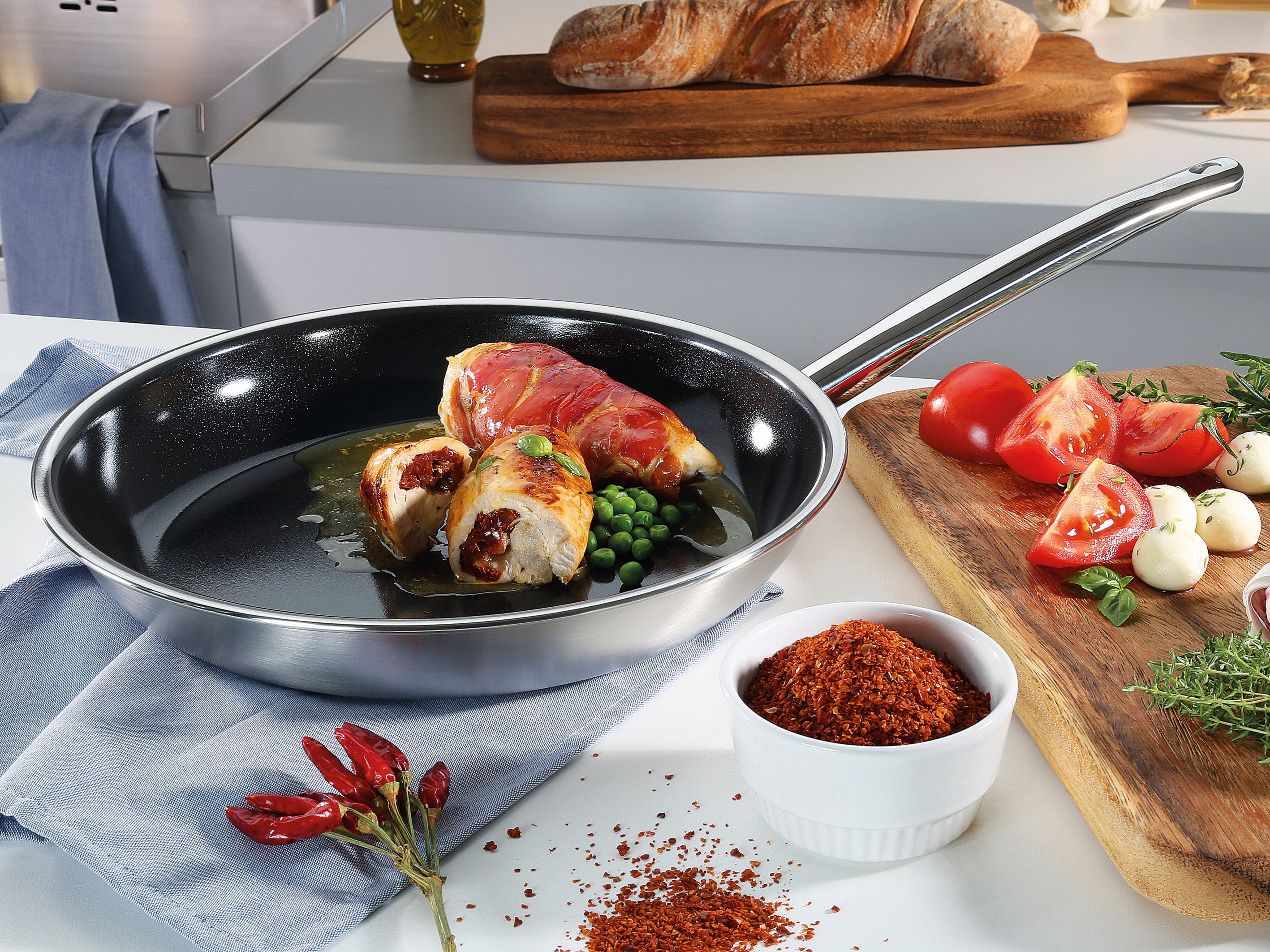 Avec la Poêle à Frire Vulcano Pure de Spring, apportez la qualité professionnelle directement dans votre cuisine ! Fabriquée à partir d'un matériau multicouche 5 couches de première qualité, cette poêle répartit la chaleur rapidement et uniformément jusqu'au bord. Le cœur du produit est le revêtement antiadhésif minéral double couche, qui est non seulement sans PFAS, mais se distingue également par son extrême résistance à l'abrasion et sa longue durée de vie.