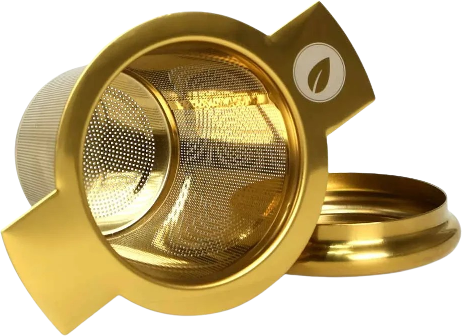 tea exclusive Tea Master - Filtre à Thé avec Couvercle/Base de Support, Dorée
