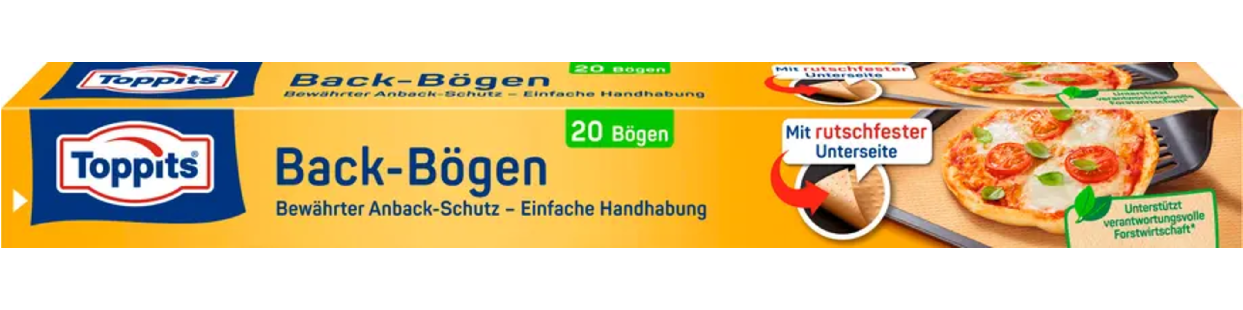 Un avantage supplémentaire : les feuilles de papier cuisson Toppits sont déjà découpées au format standard d’une plaque de cuisson, pour une utilisation simple et immédiate.