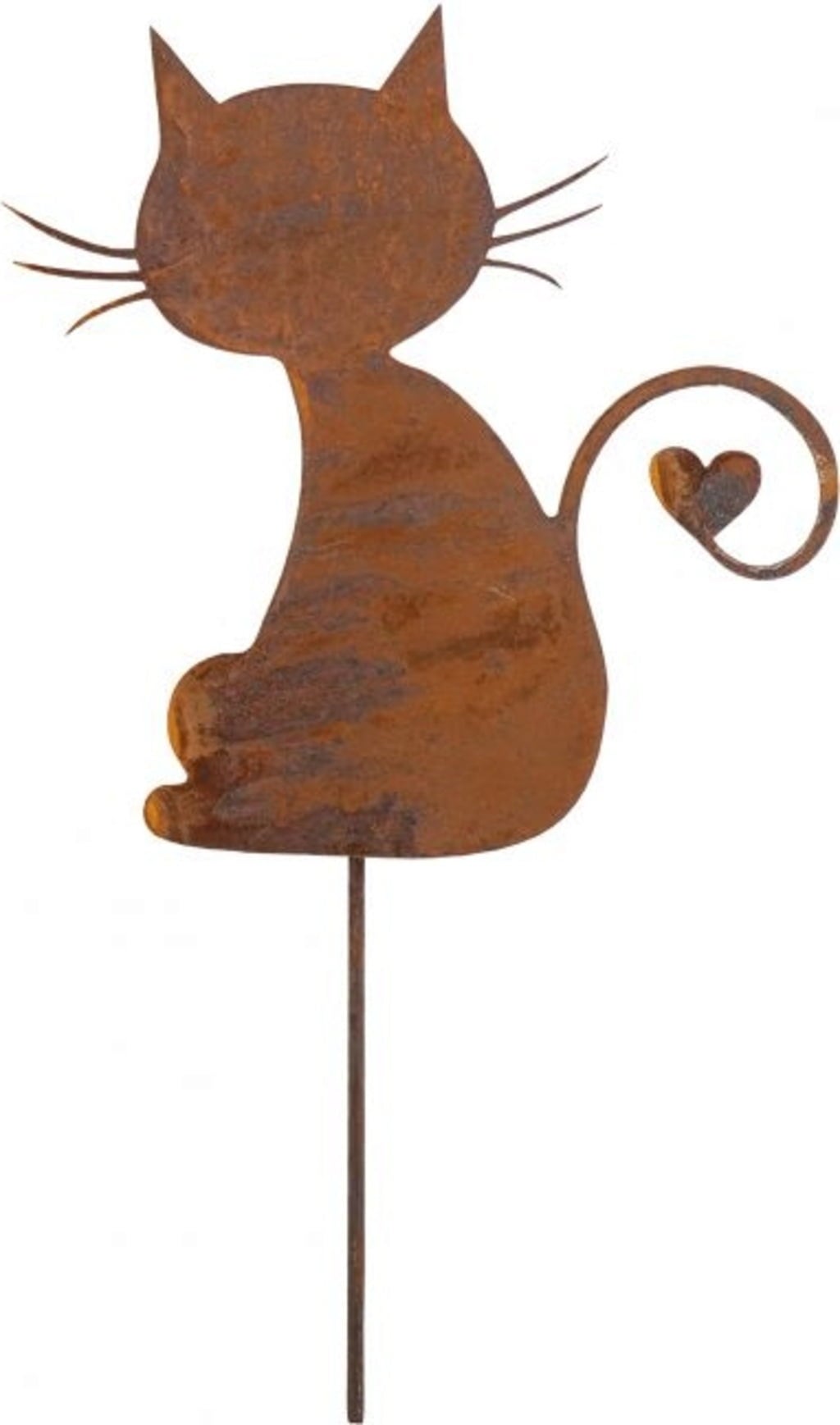 Questa meravigliosa decorazione a forma di gatto va inserita nell'aiuola o nel vaso di piante. La patina in ruggine dona un tocco moderno e chic al tuo giardino!