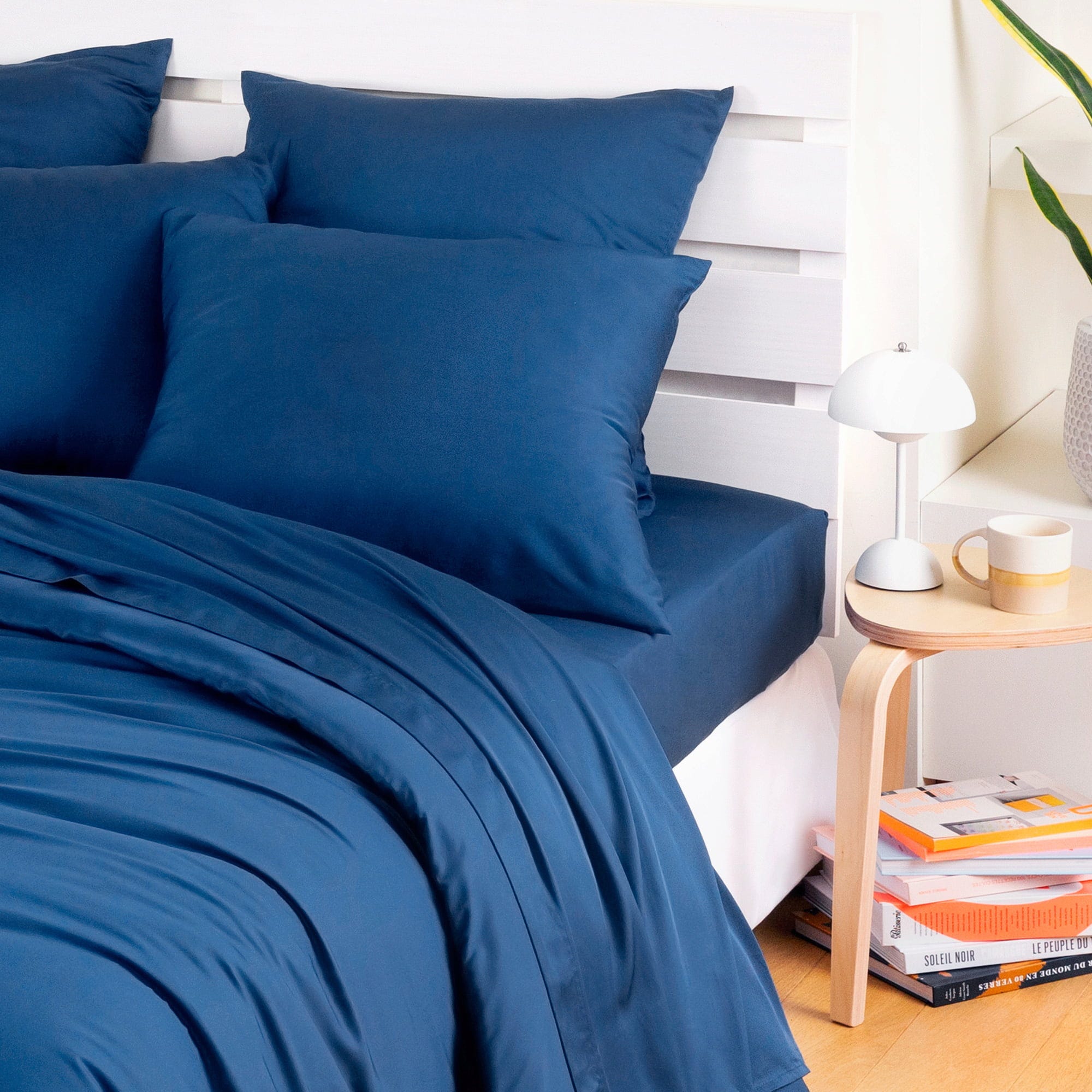 Bambaw Cozy Lenzuolo in Bambù con Angoli, 90 x 200 cm, Navy