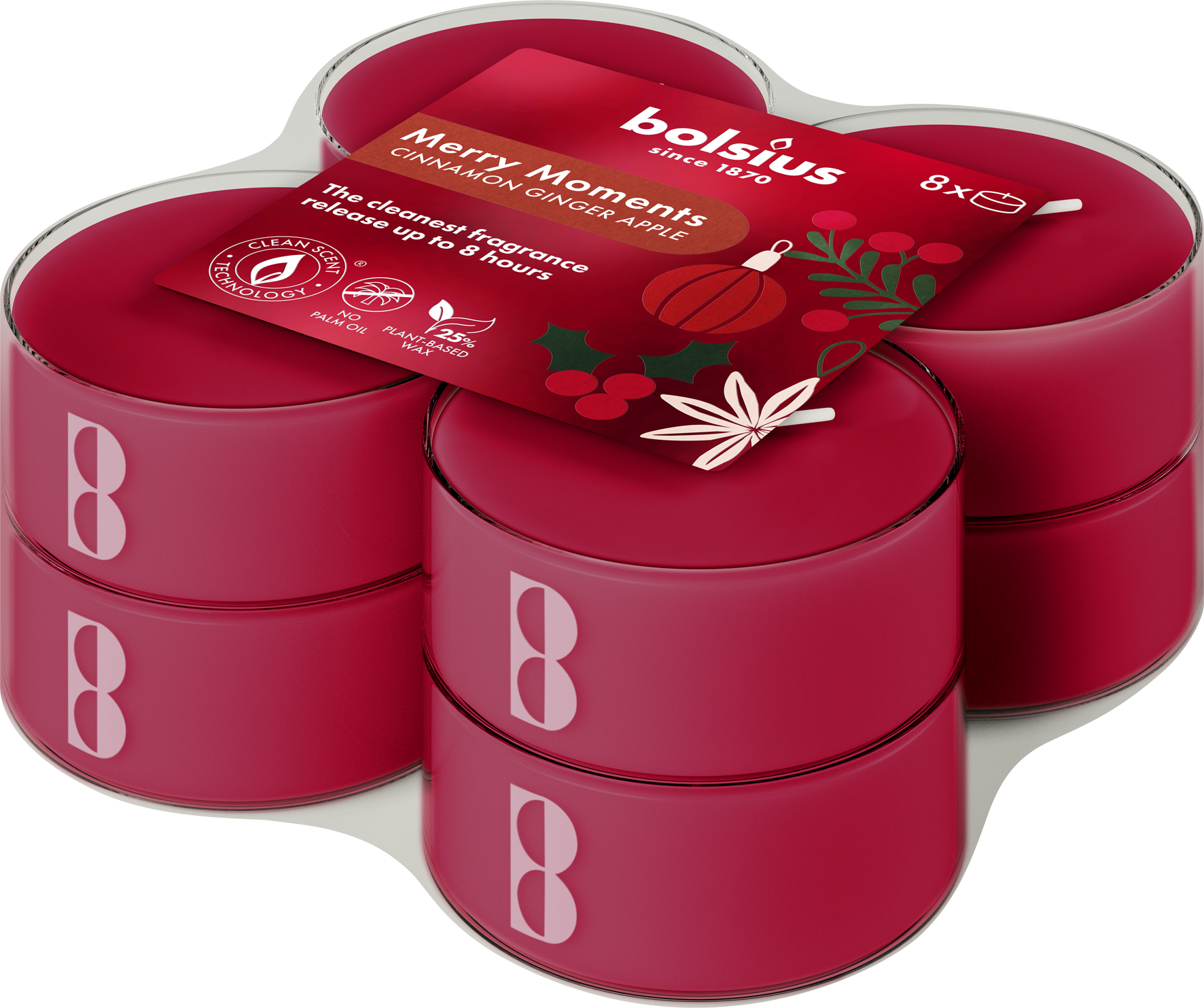 I lumini profumati Merry Moments di bolsius incantano con il loro profumo caldo e speziato di cannella, zenzero e mela al forno. La fragranza si diffonde a lungo, creando un’atmosfera accogliente durante i mesi più freddi. I lumini sono privi di olio di palma e arricchiti con estratti naturali.