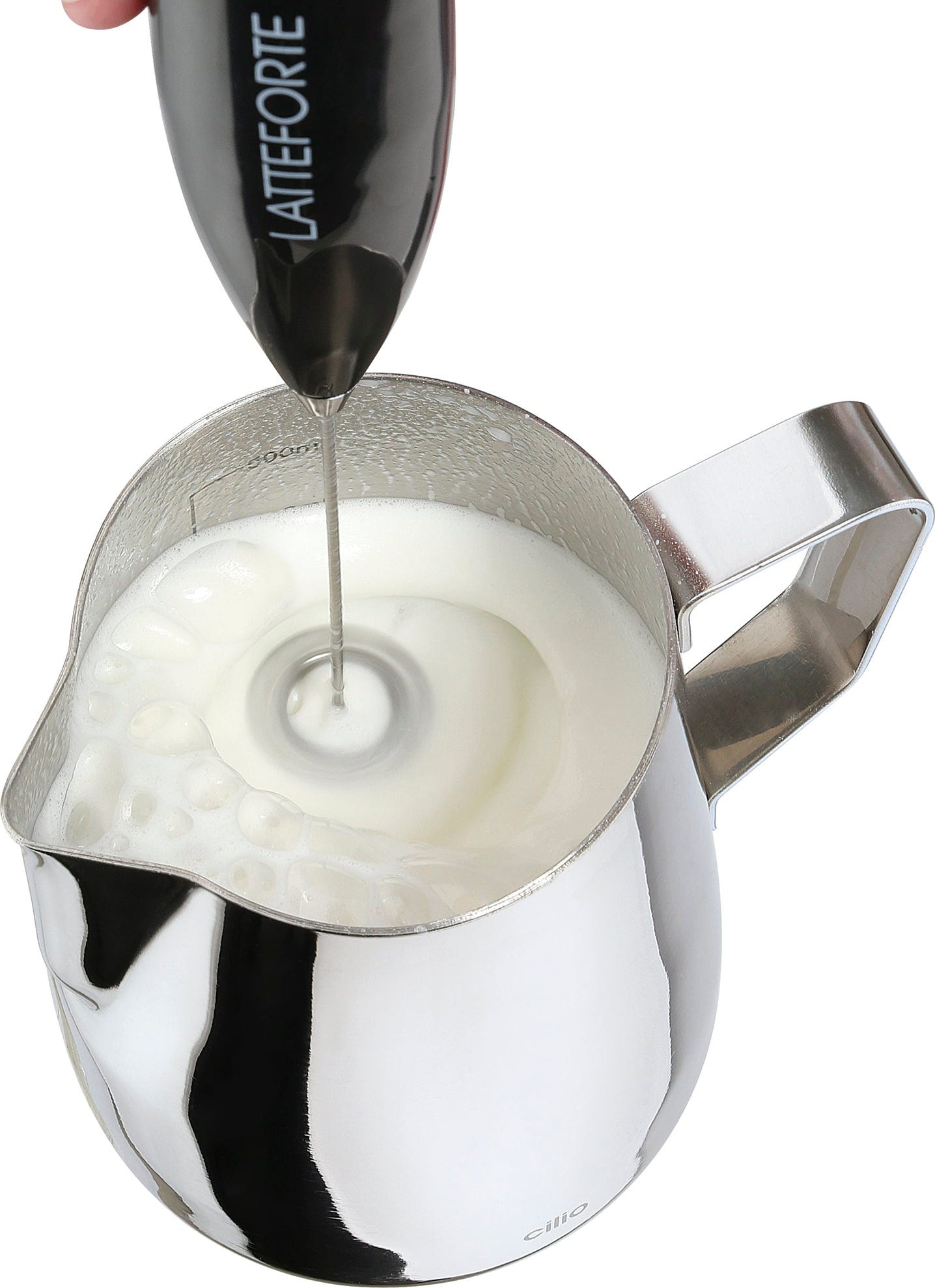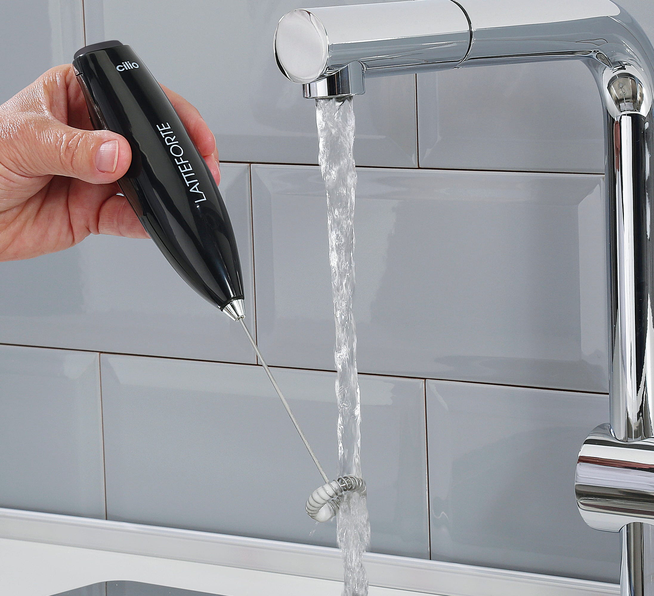Il montalatte LATTEFORTE di cilio è progettato per offrire prestazioni elevate e lunga durata. Che si tratti di cappuccino, latte macchiato o cioccolata calda, questo montalatte a batteria lavora senza sforzo sia con latte caldo che freddo. Con 16.000 giri al minuto, crea in un attimo una schiuma particolarmente densa e fine.