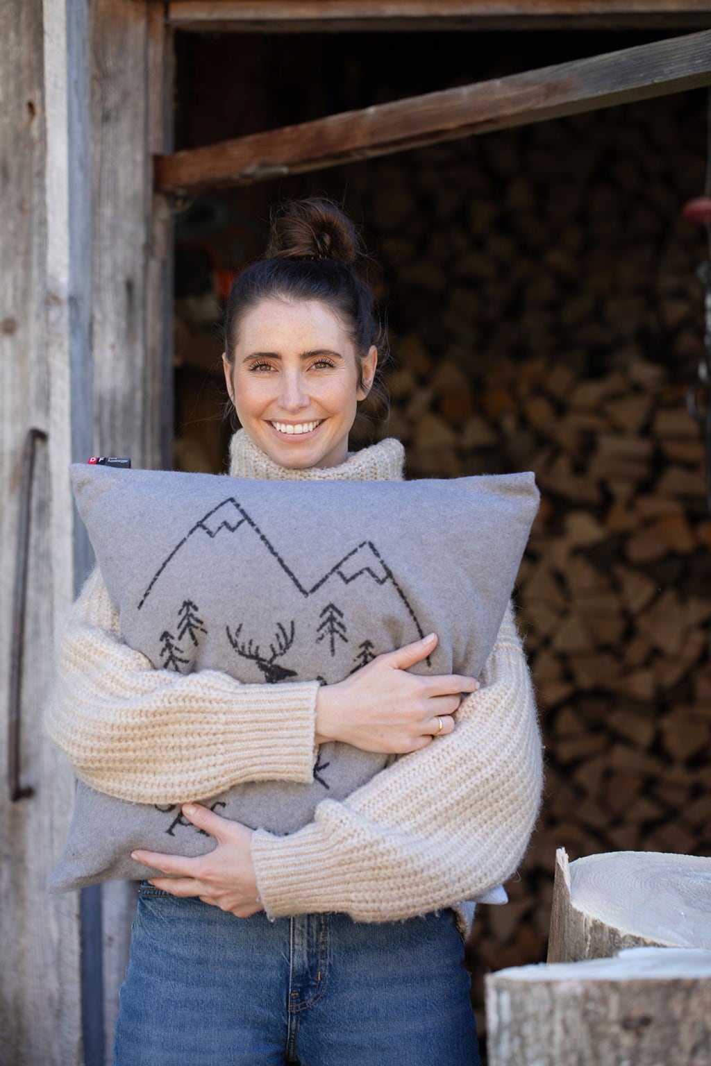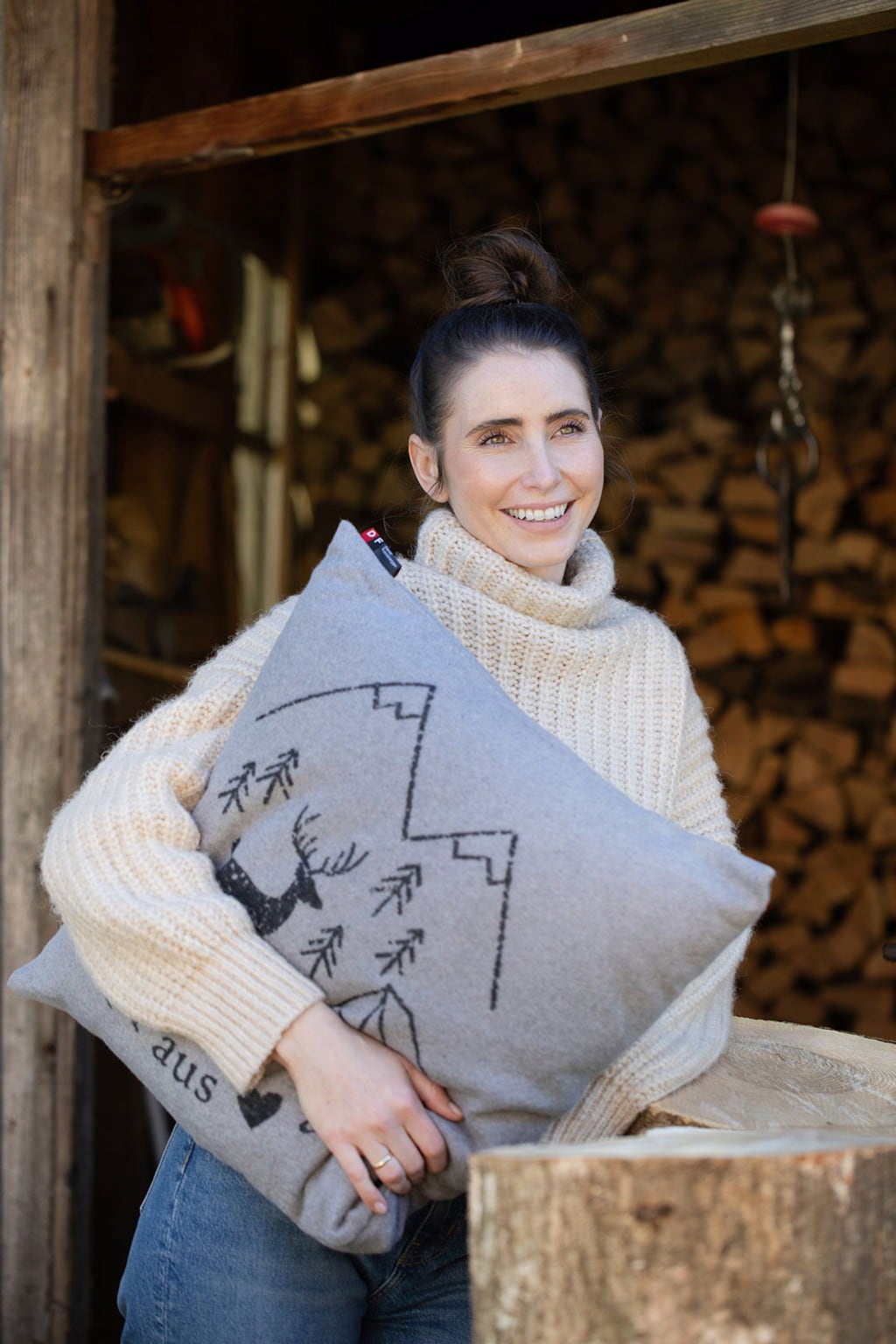 Il copricuscino, realizzato in Austria con pregiato cotone riciclato, non è solo un autentico colpo d’occhio su ogni divano, ma conquista anche per la sua piacevole morbidezza.