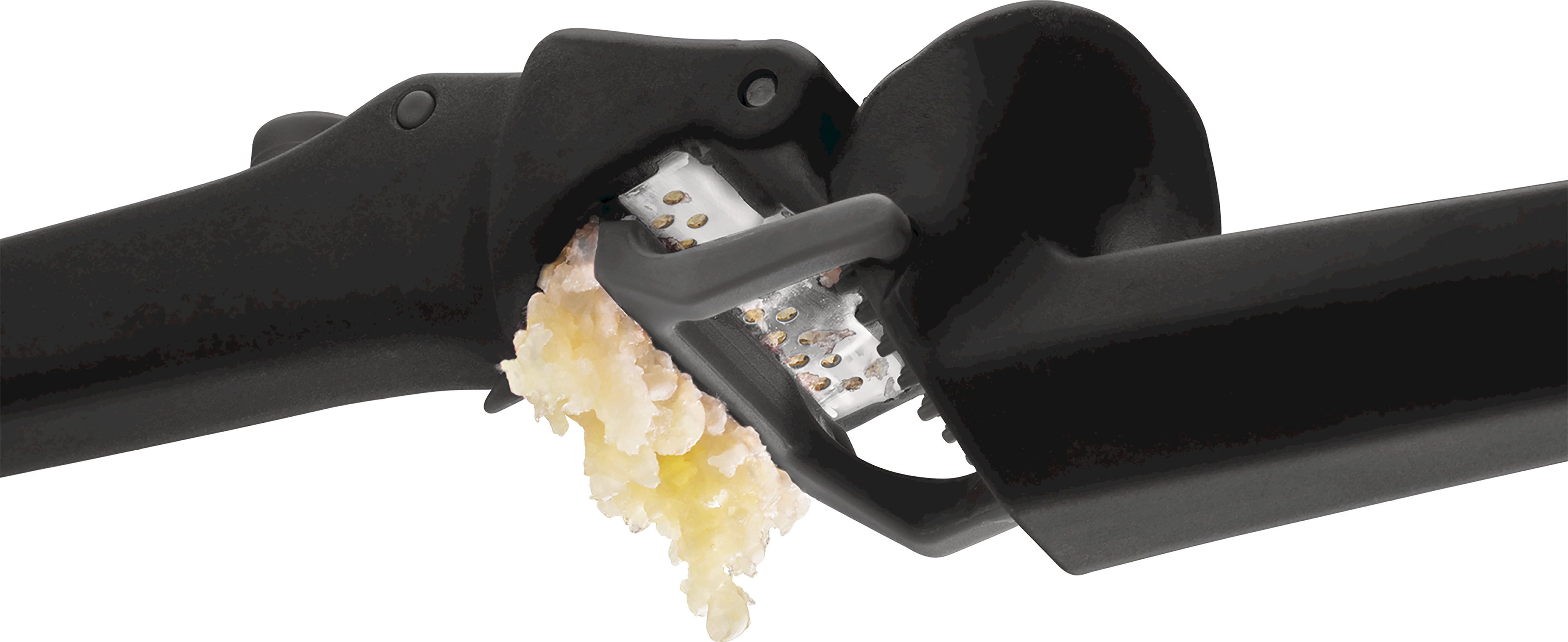Quando apri lo strumento, un raschietto automatico rimuove i residui dall'interno, mentre l'ingegnoso pulsante “Peel Eject” espelle facilmente le bucce. In questo modo le mani restano pulite e la pressa è subito pronta per essere riutilizzata dopo un rapido risciacquo!
